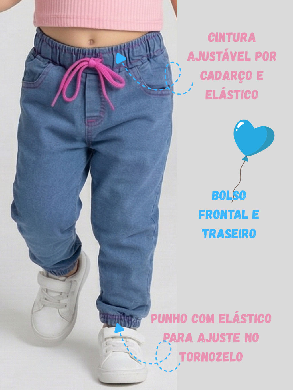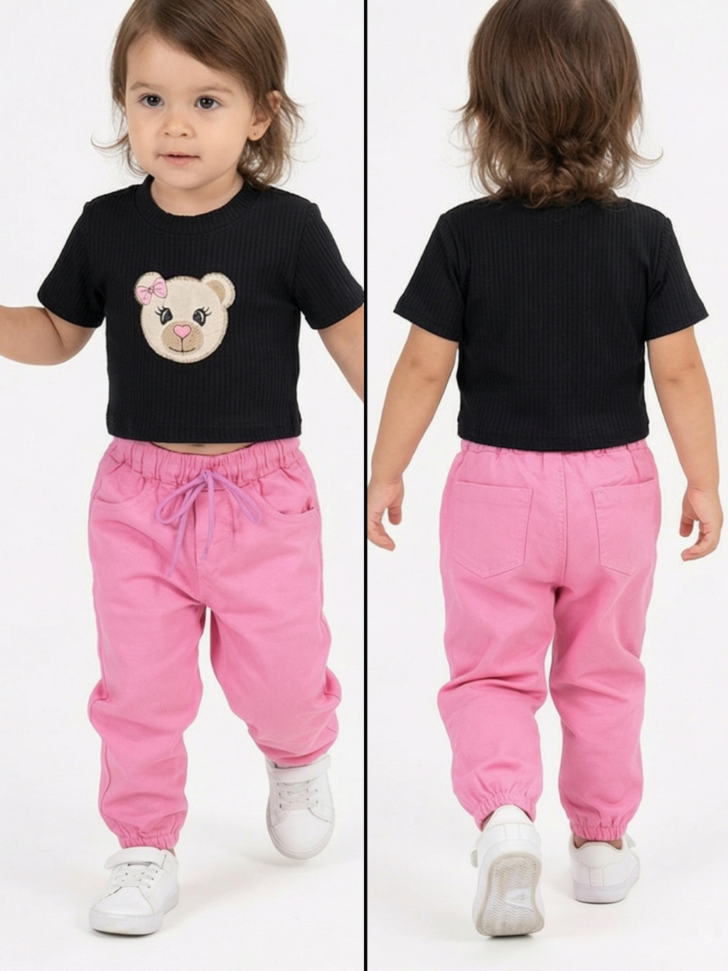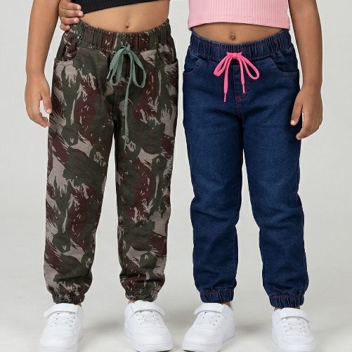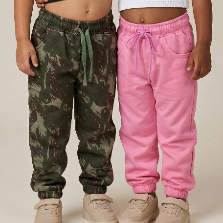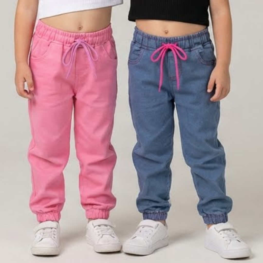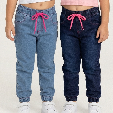 kit Com 2 Calças Jogger Menina princesa Com Cadarço Regulador 01 ao 06 Estilosa
