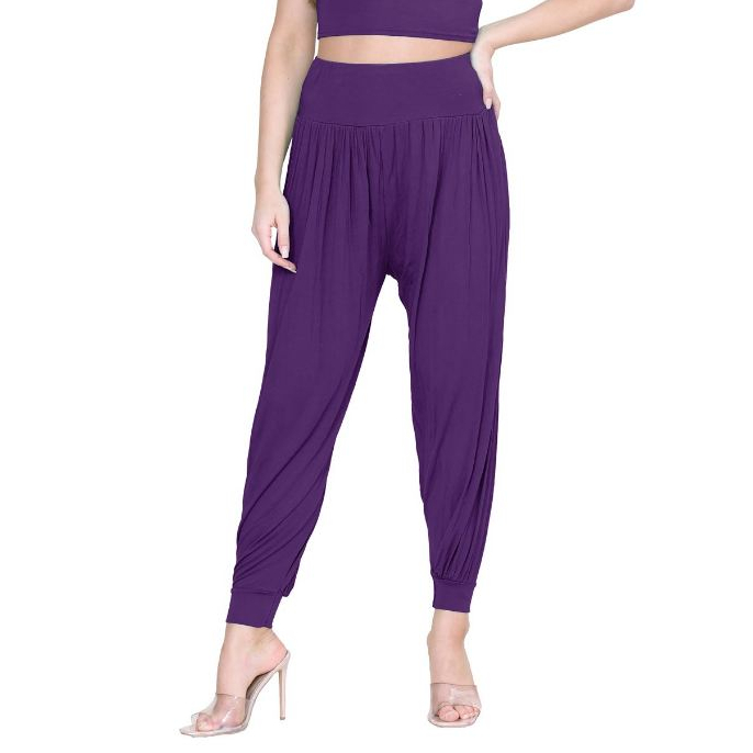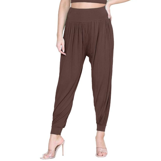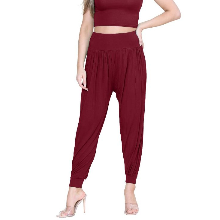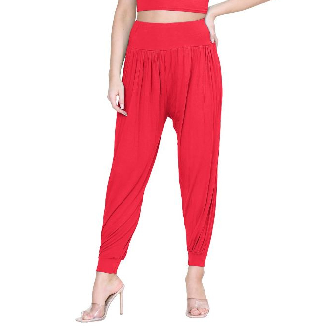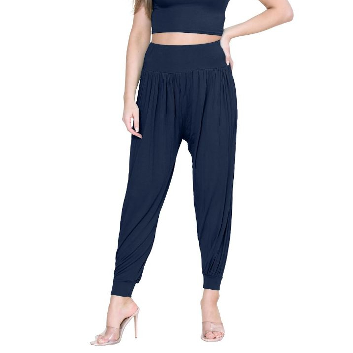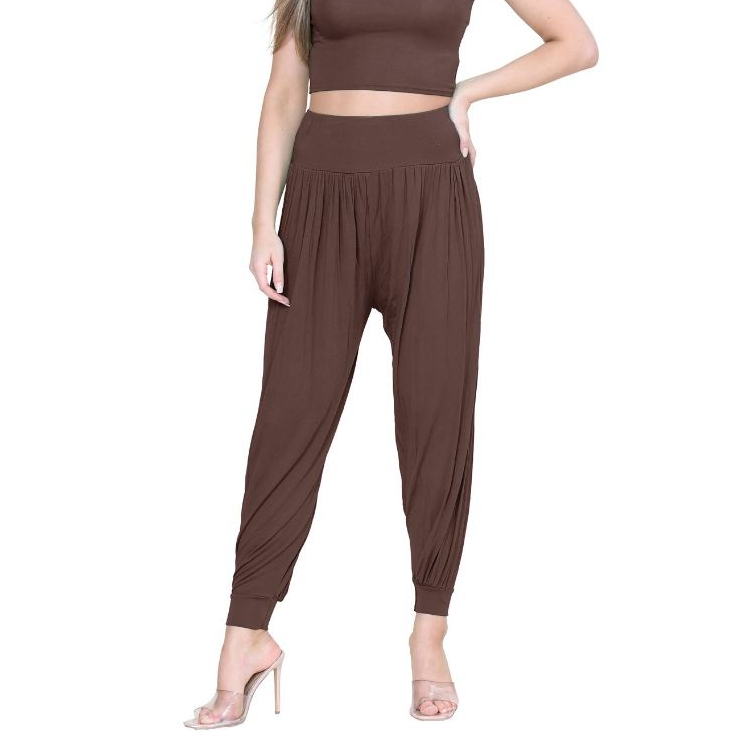 Calça Feminina Saruel Soltinha Franzida Cintura Alta Malha Viscolycra Com Forro