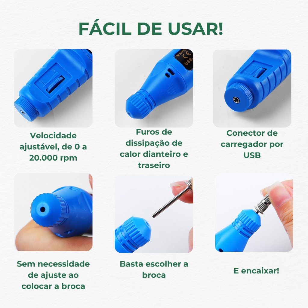 Lixadeira Lixador de Unha profissional Motor Elétrico Bivolt Manicure Pedicure 6pcs kit remover