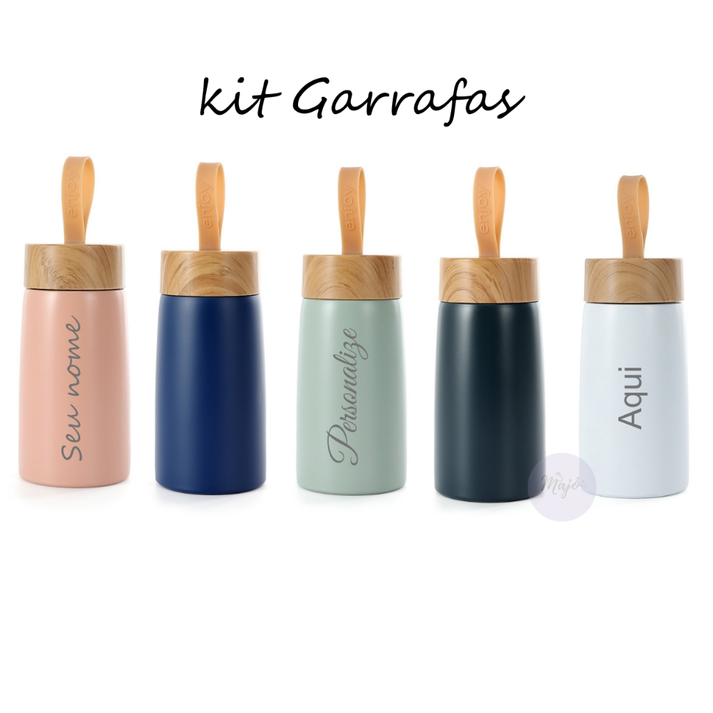Kit 30 Mini Garrafas Inox 250 ml personalizadas alça design bambu pequena garrafinha