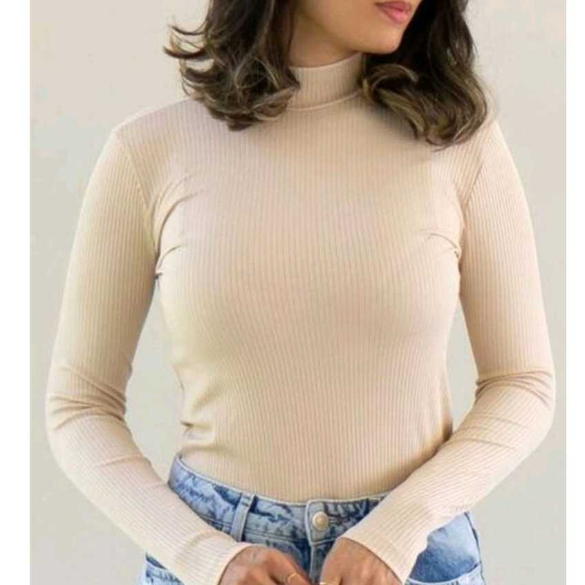 Blusa Feminina Manga Longa Gola Alta Canelada