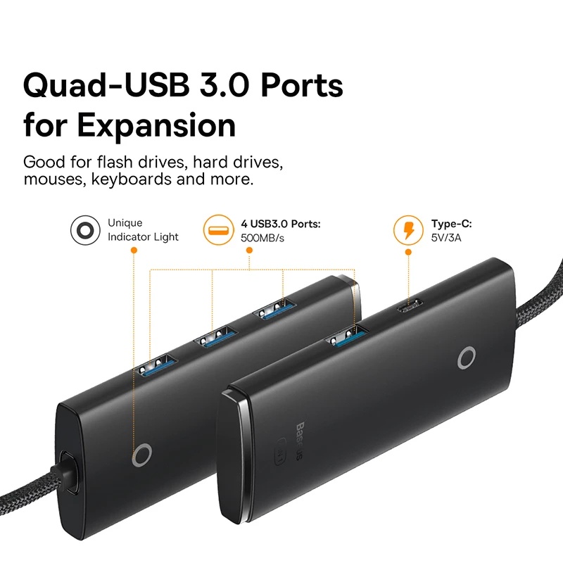 Baseus Multi 4 Em 1 USB HUB C 3.0 Adaptador Para MacBook Pro Air Huawei Companheiro 30