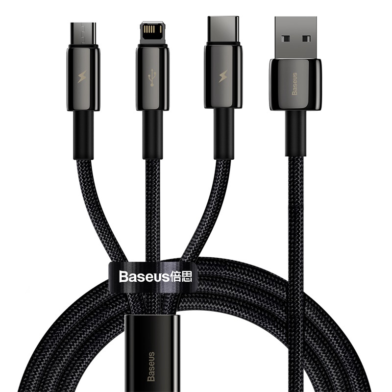 Cabo de carregamento rápido baseus 3 em 1 liga compatível para telefone
