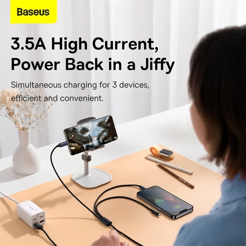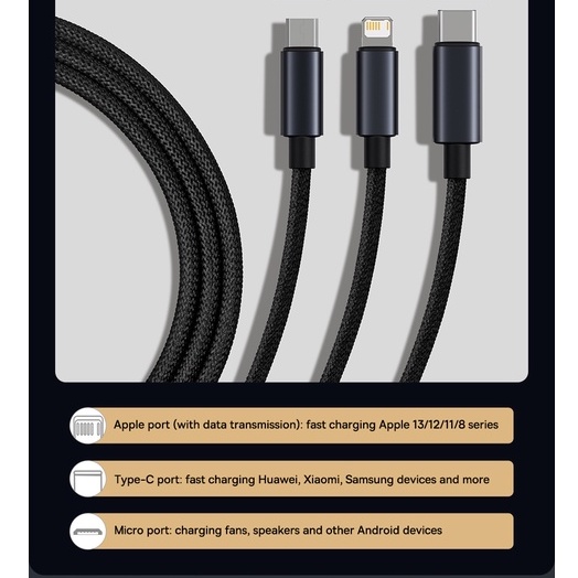 Baseus Cabo USB 3 Em 1 Para M + C + L Compatível Samsung Phone Huawei