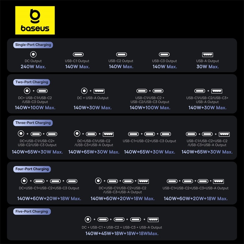 Baseus 240W Digital GaN Inteligente Desktop Carregador Rápido 3C + U + DC PD3.1 QC PPS