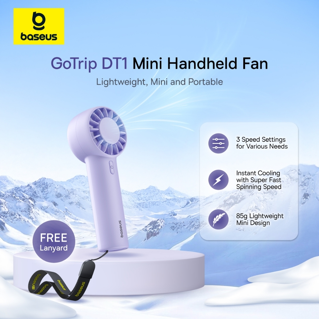 Baseus GoTrip DT1 Verão Mini Ventilador Portátil USB Recarregável Turbo Resfriamento Ajustável Vento Forte