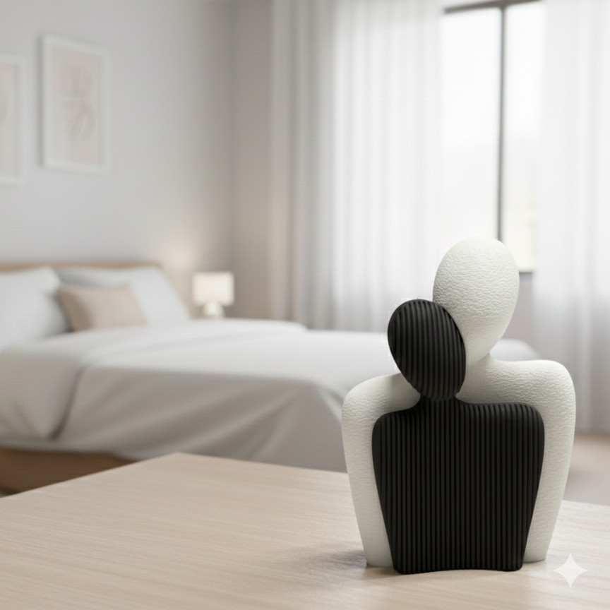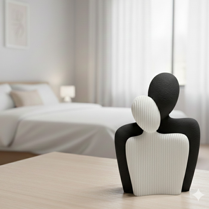 Escultura Casal Abraço Minimalista – Amor, União e Elegância | Decoração Moderna para Sala