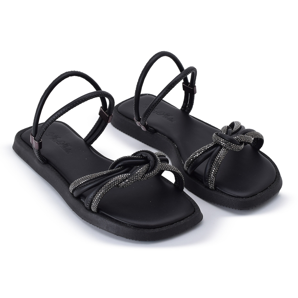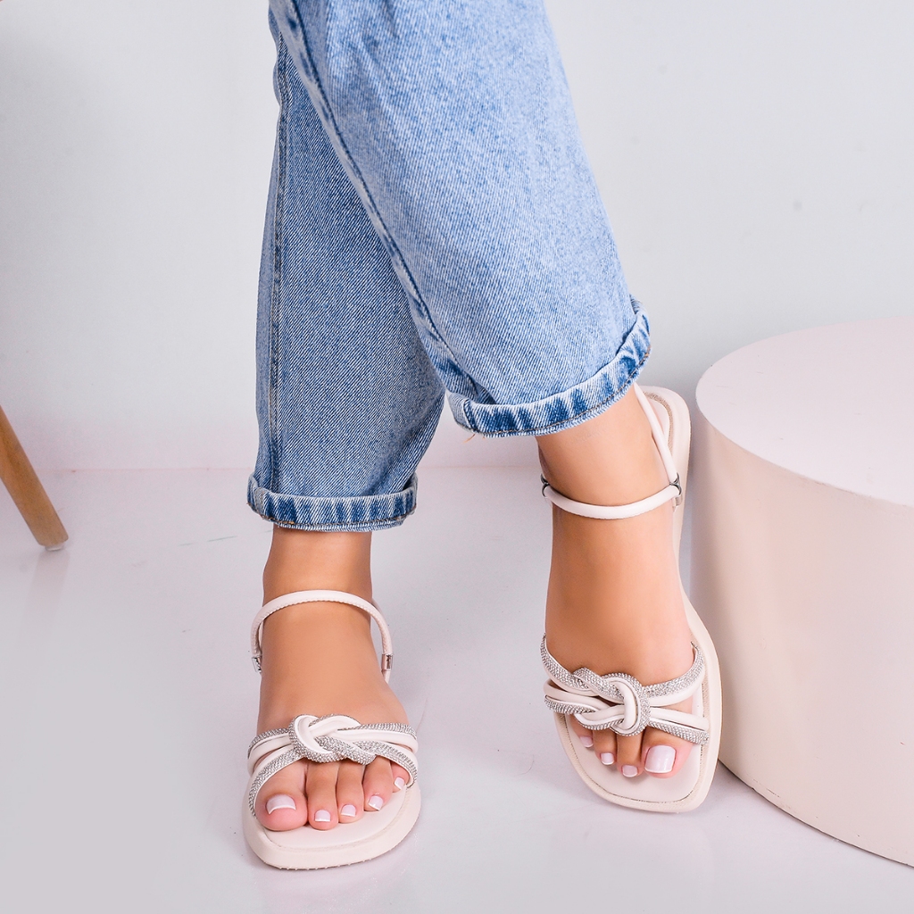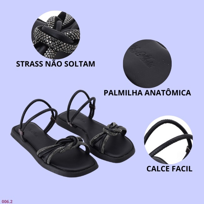Rasteirinha Papete Feminina com Brilho Nó Estilizado Conforto Elegância Fabrica Miss Moda 006.2