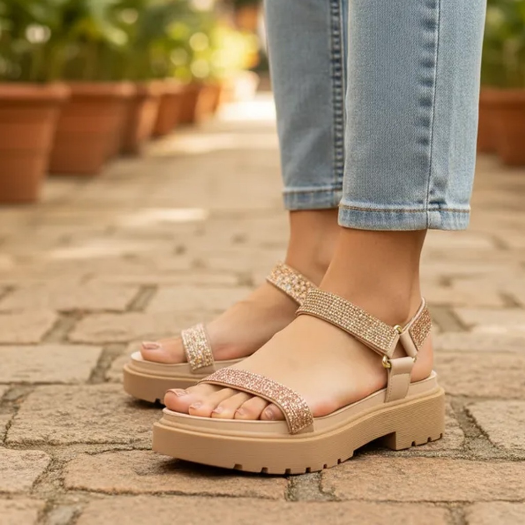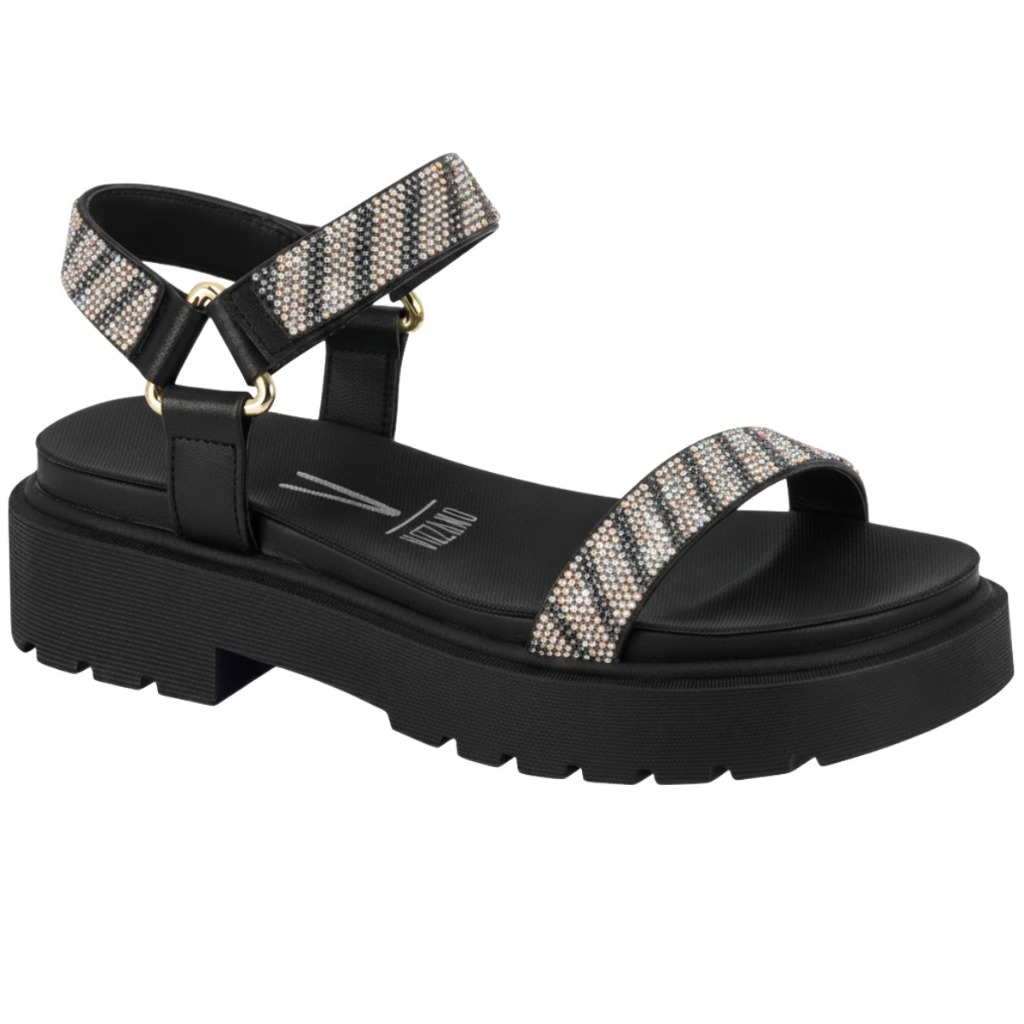 Sandalia Papete Vizzano feminina Brilho Com Strass Confortável Tendência