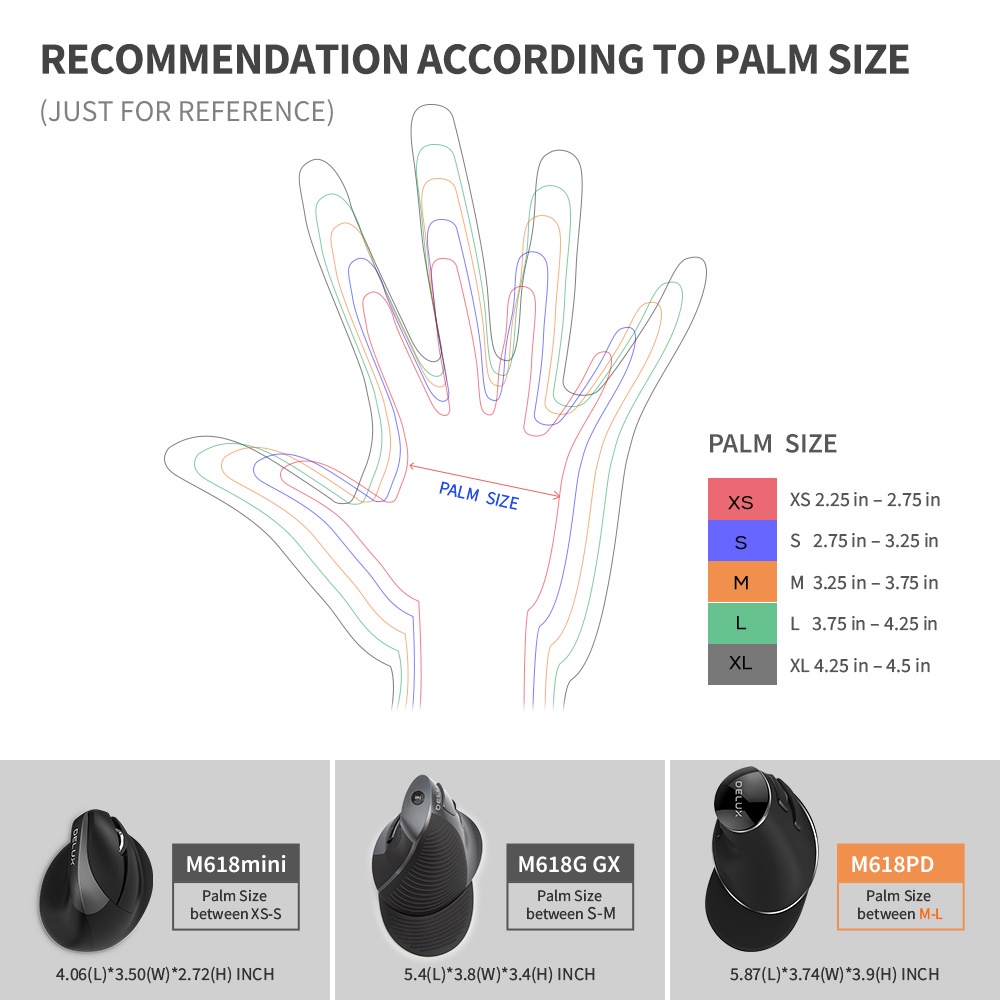 Delux M618PD 2.4G Mouse Ergonômico Vertical Recarregável Sem Fio Bluetooth 4000DPI 6 Botões Descanso Removível Para Palma PC