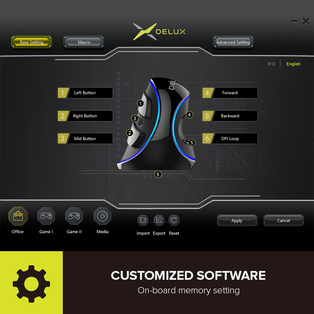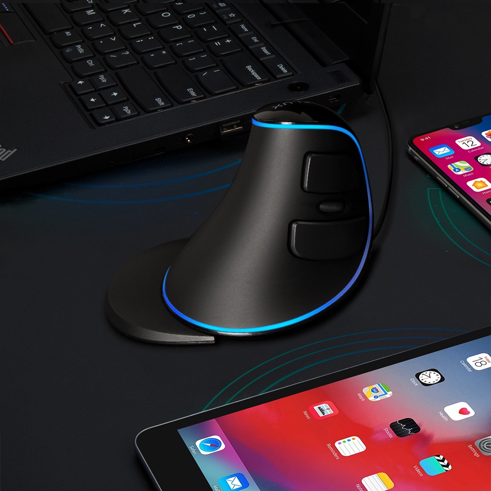 Delux M618PLUS PU Azul Mouse Vertical USB Computador Óptico Escritório Mause Wired Mão Direita Ergonômico Ratos Para PC