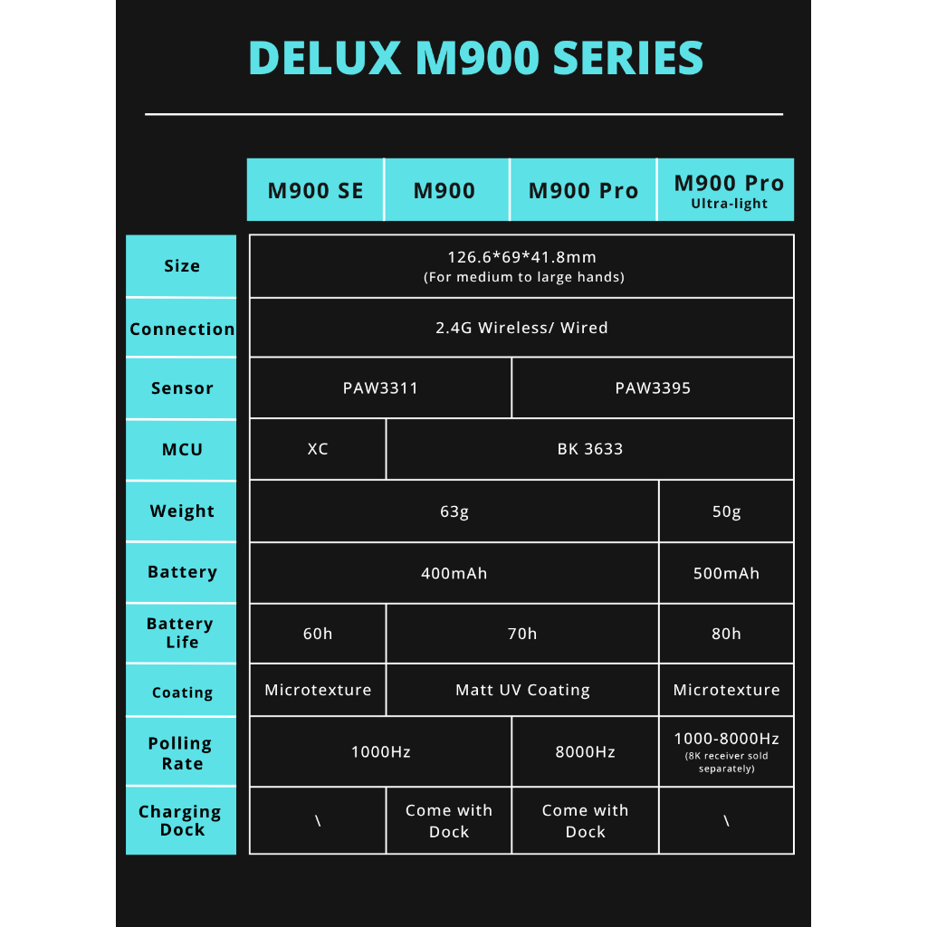 Delux M900 Se PAW3311 Mouse Para Jogos DPI MAX 12000 Com Fio 2.4G Sem Recarregável 63g Design Concentrado Em Massa PC/La
