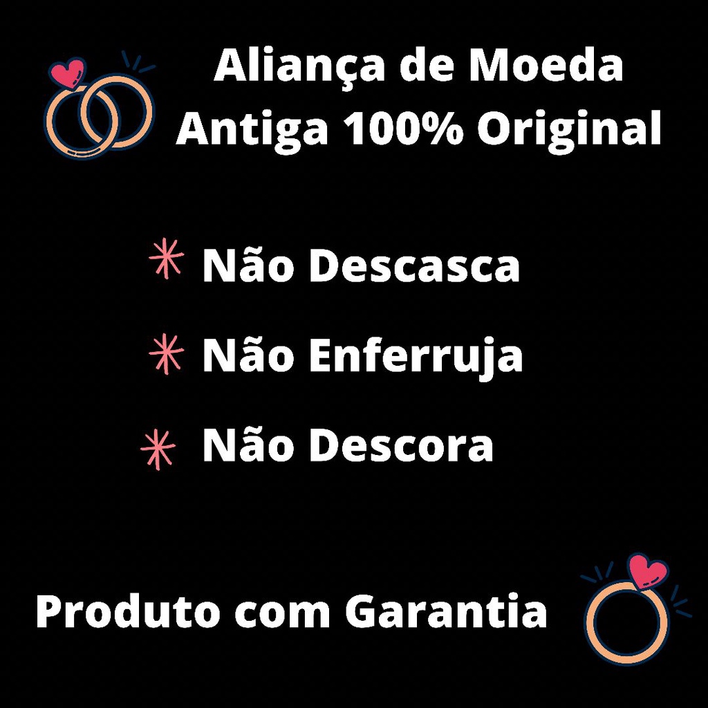 Par Alianças Moedas Antiga Casamento Noivado Chanfrada 5MM + Forro de Aço + Anel Paris
