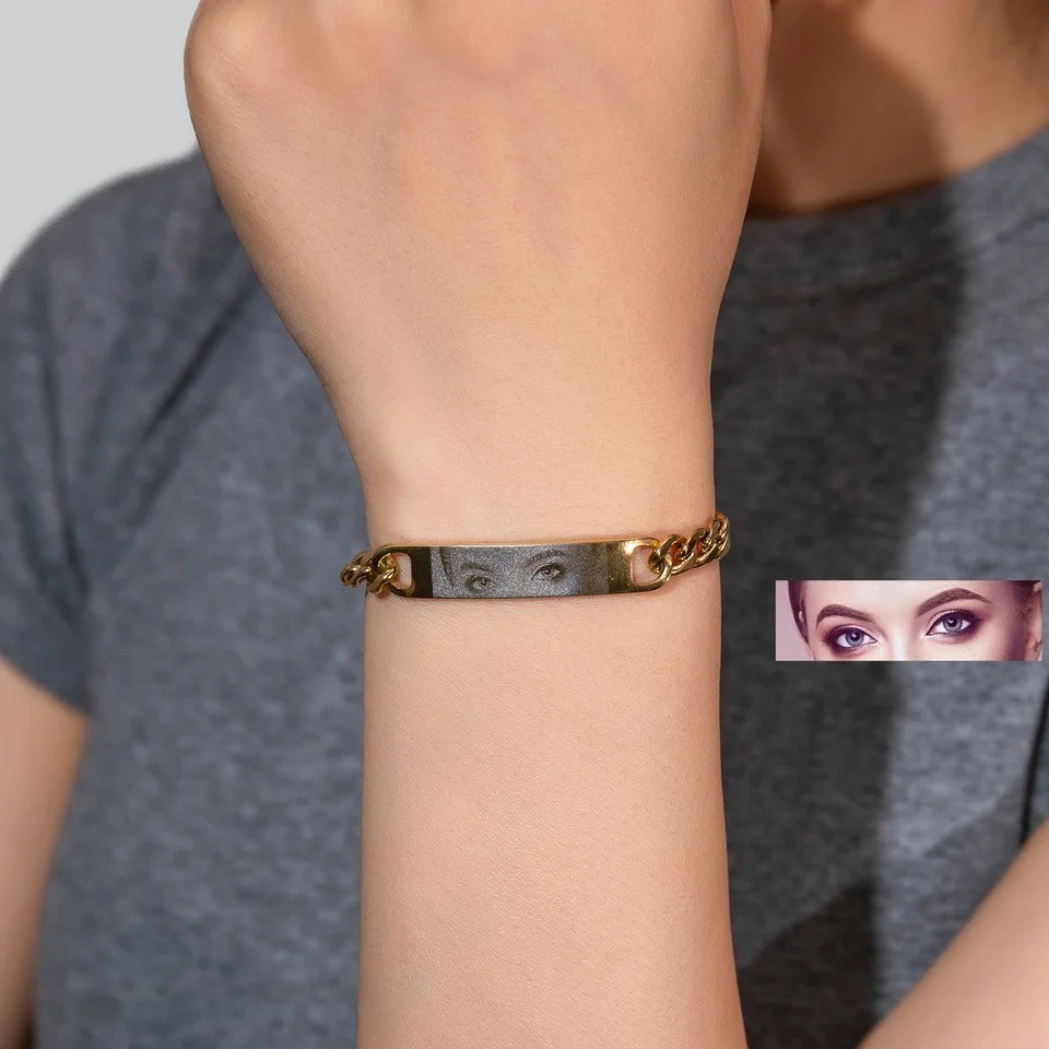 Meaeguet Pulseira Com Foto De Olhos Personalizados , Aço Inoxidável , Gravação A Laser Personalizada , Nome De Imagem
