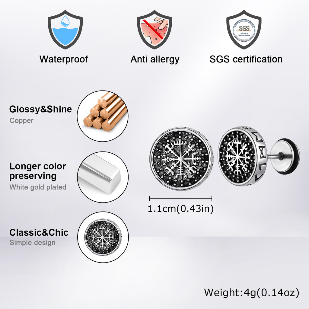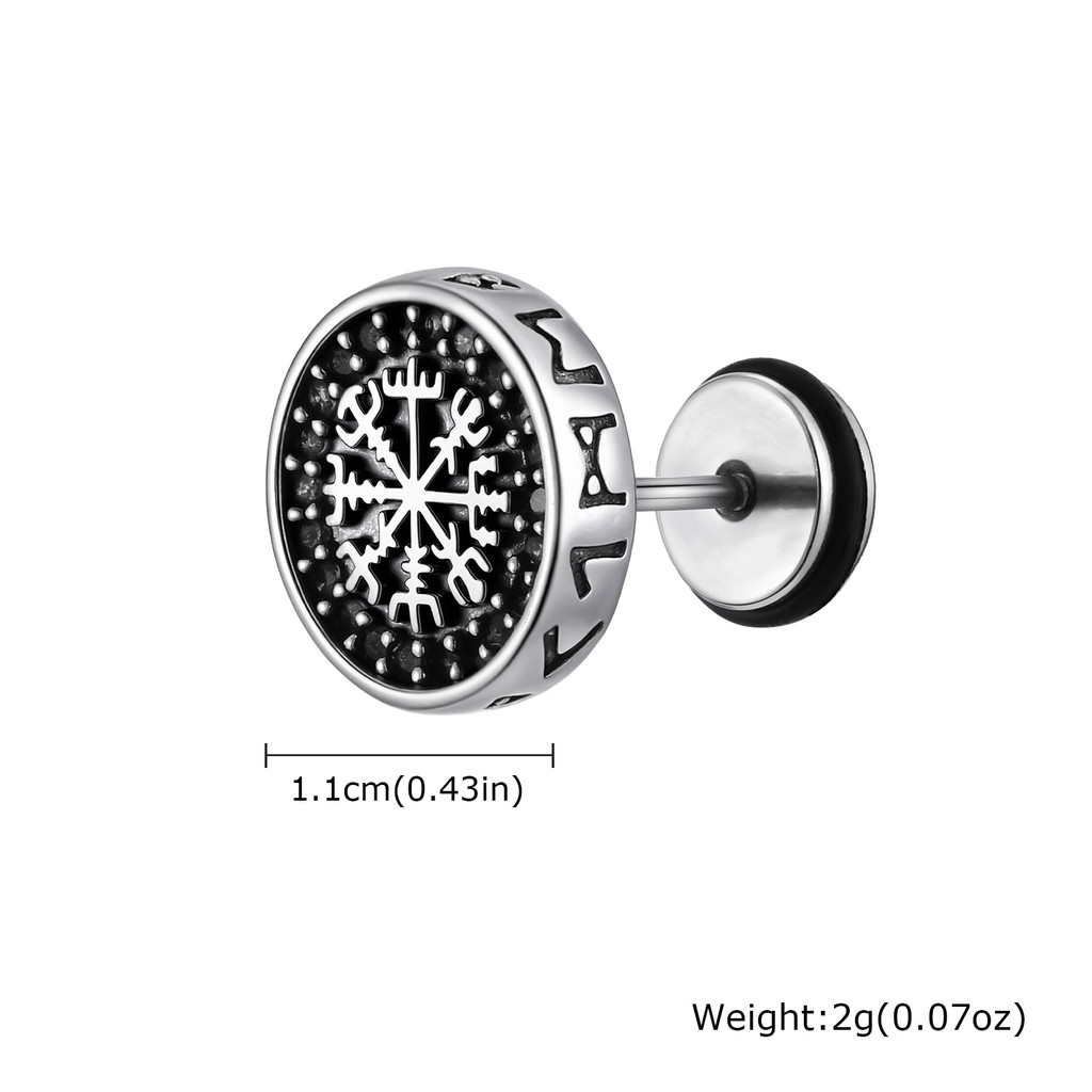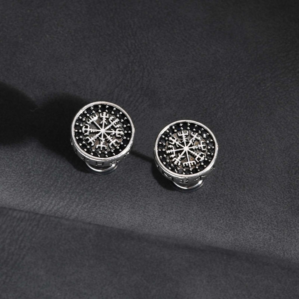 Brincos Masculinos Góticos Meaeguet Com Bússola Viking Em Cobre Acabamento Platina E Zircônia