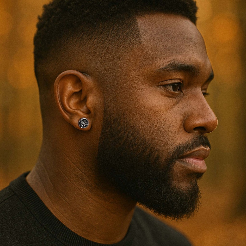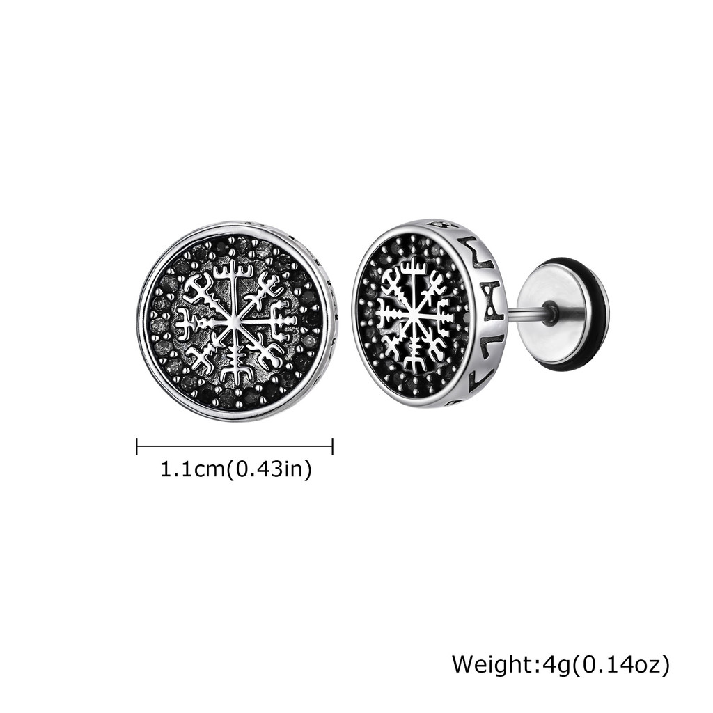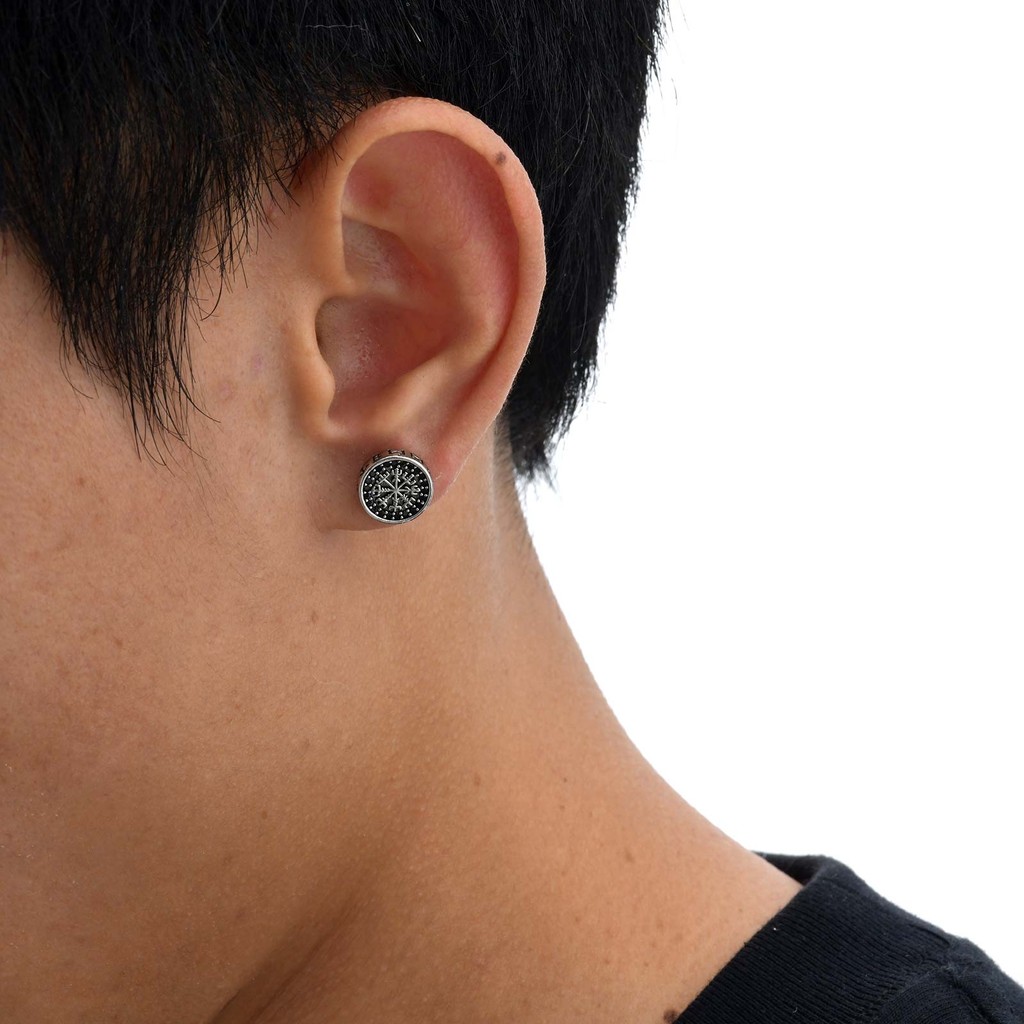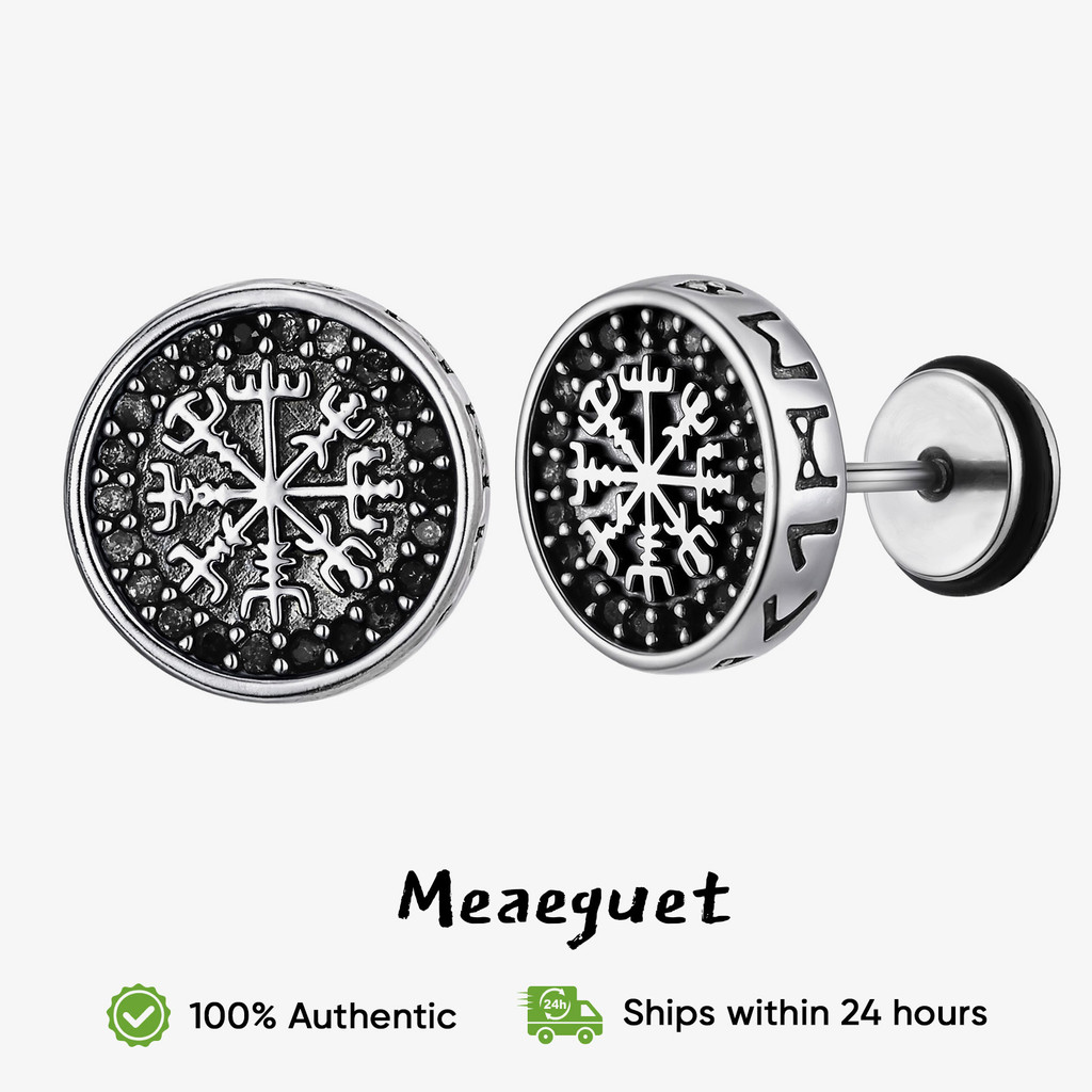 Brincos Masculinos Góticos Meaeguet Com Bússola Viking Em Cobre Acabamento Platina E Zircônia