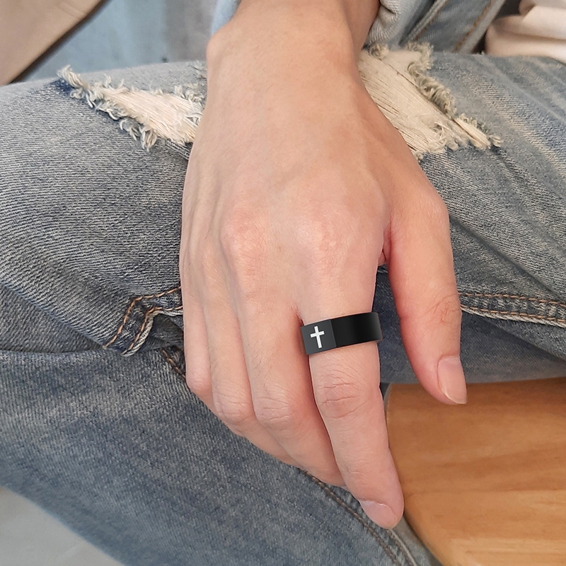 Anel De Carboneto De Tungstênio De 8mm Masculino Com Cruz / Bijuteria Cristã