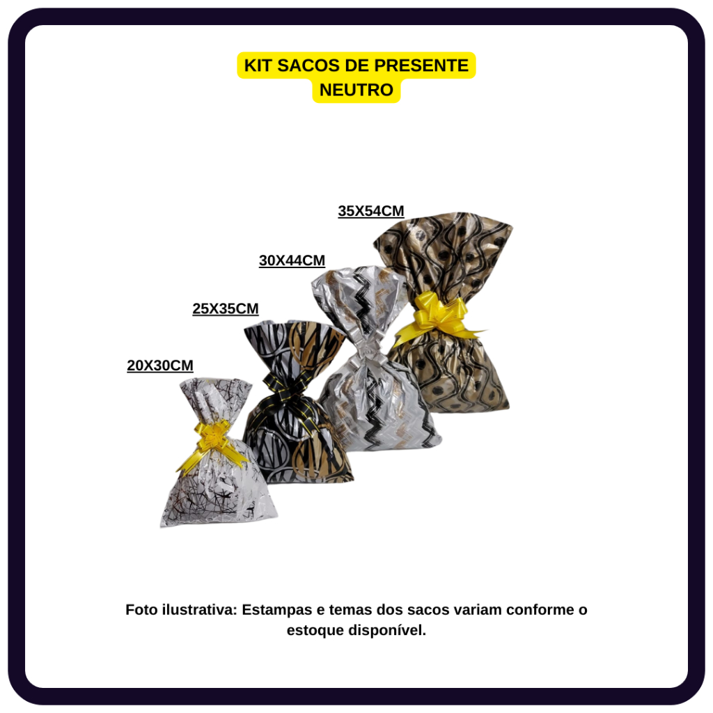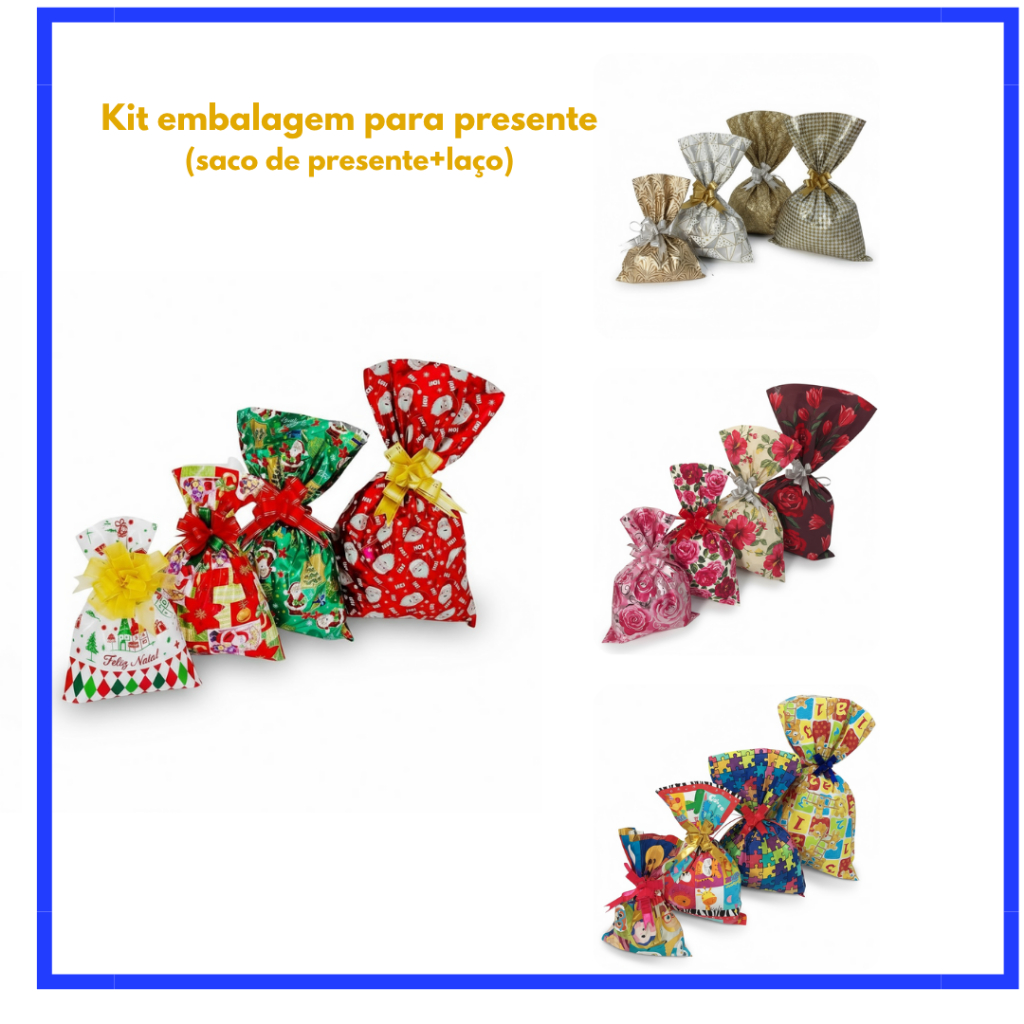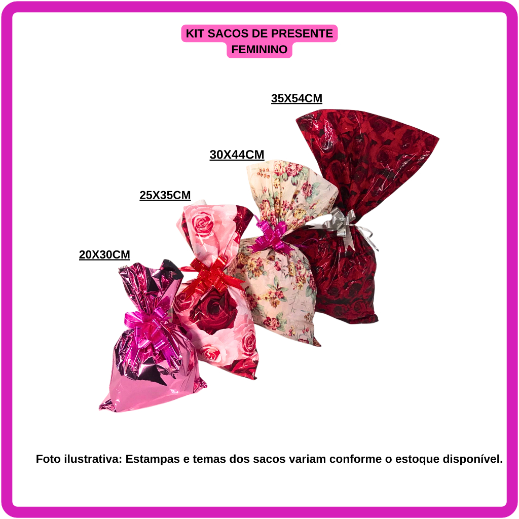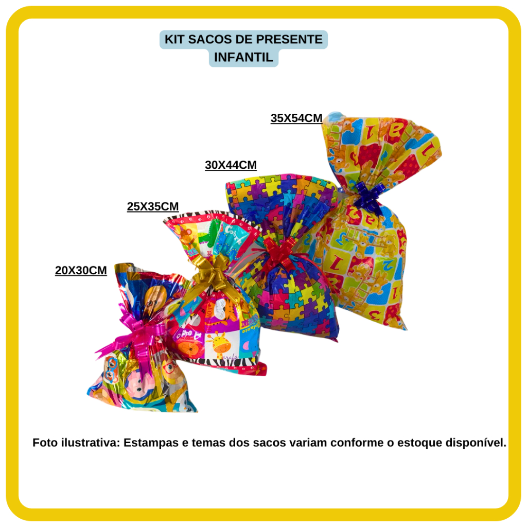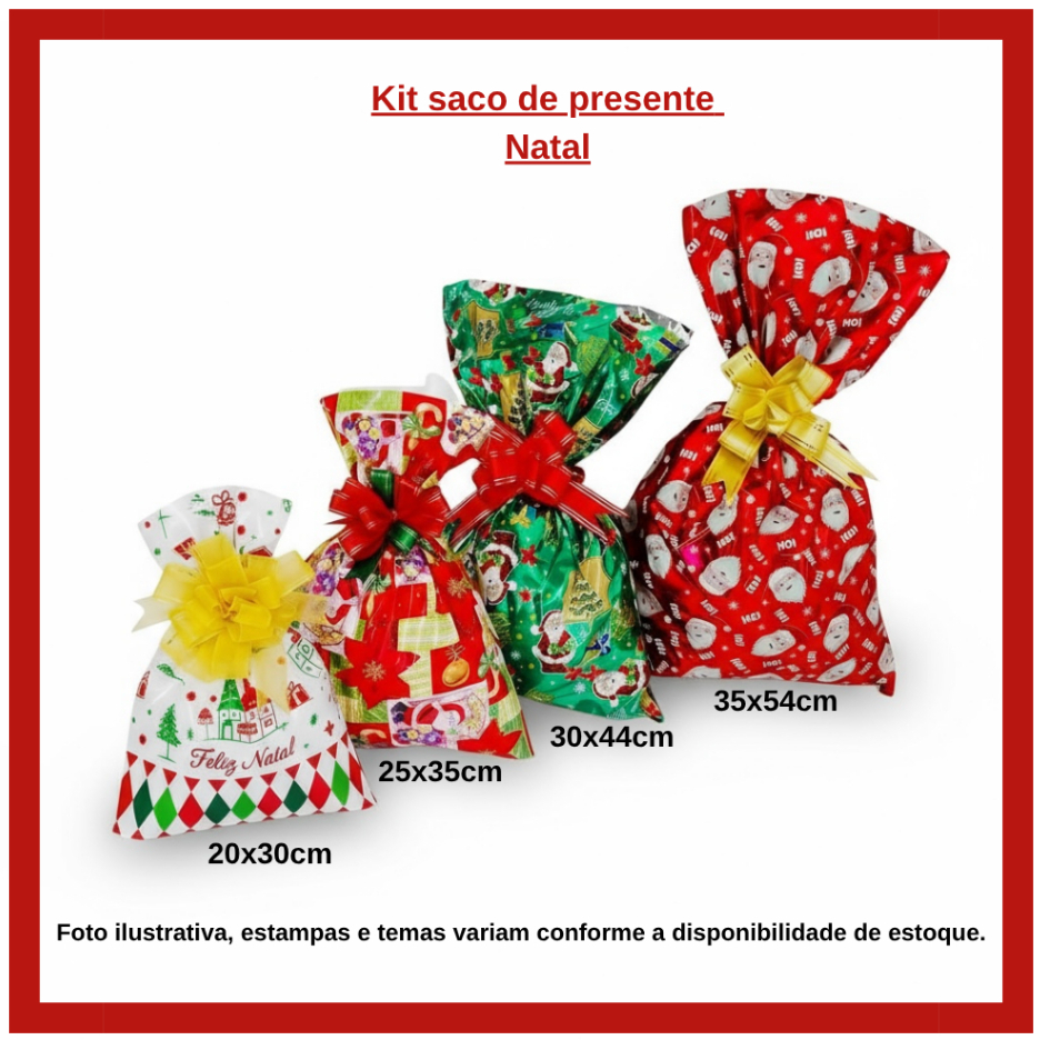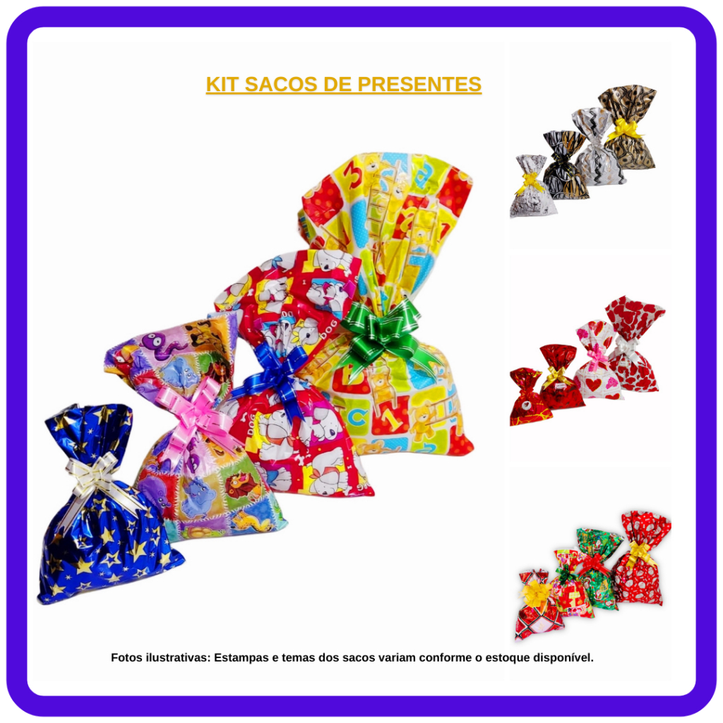 kit saco de presentes com tamanhos sortidos com 40 UNIDADES