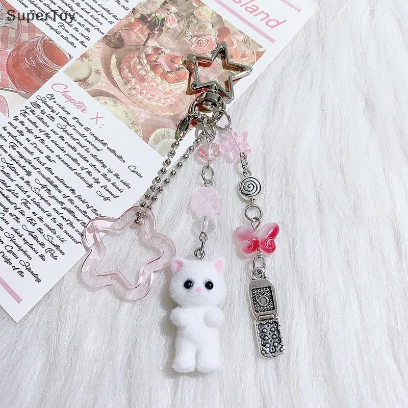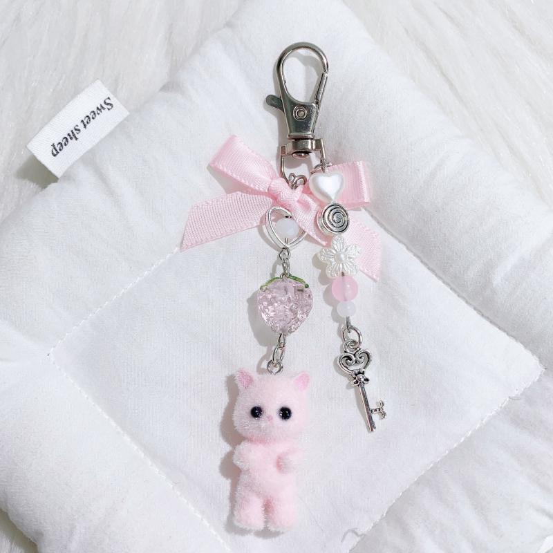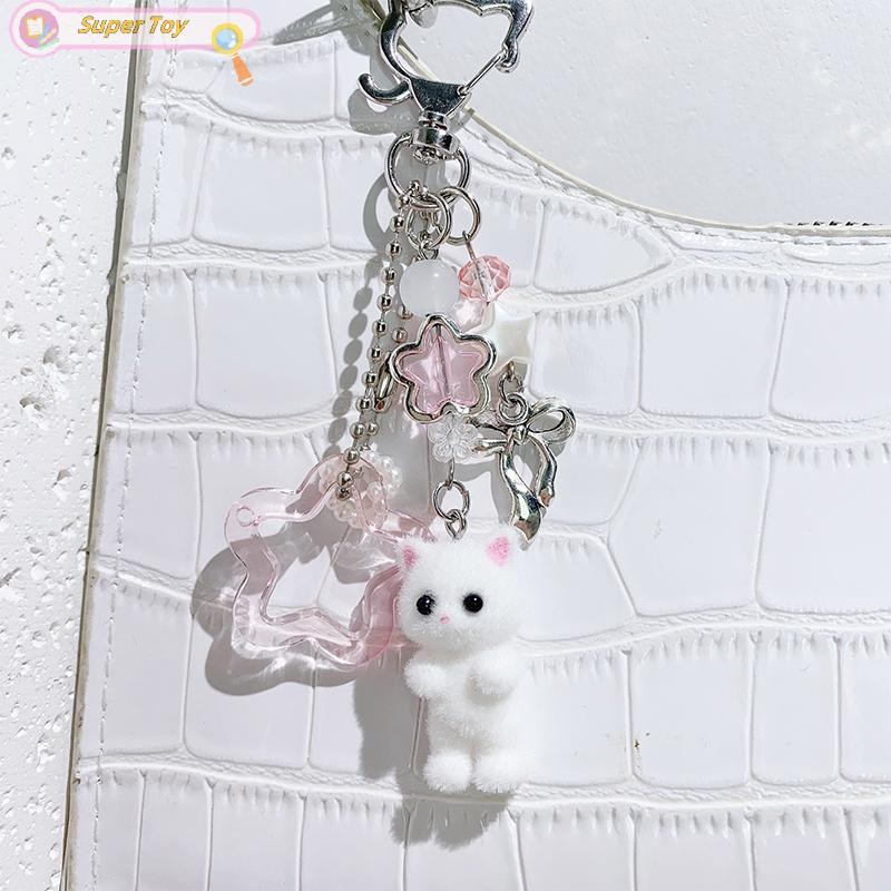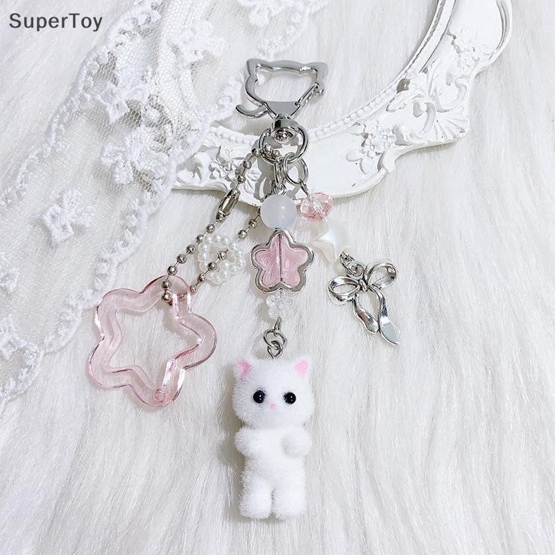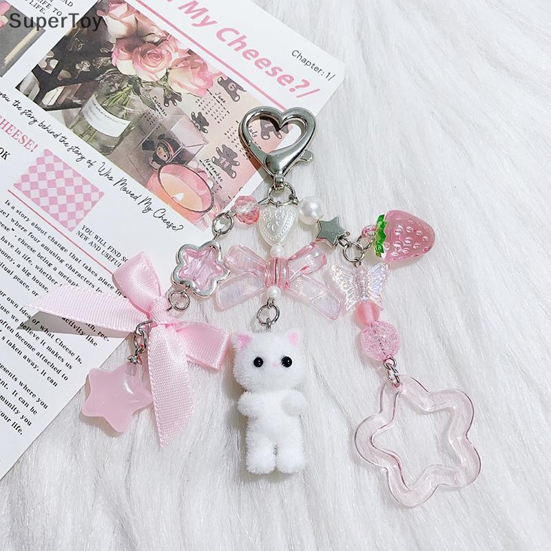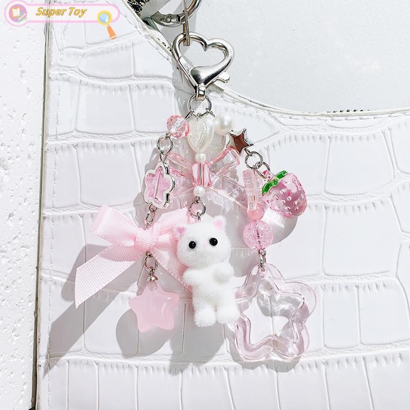 SUPERTOY Criativo Bonito Flocado Gatinho Morango Pingente Chaveiro Doce Animal Mochila Decoração Acessórios Melhor Amigo