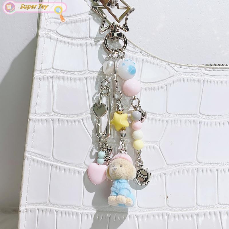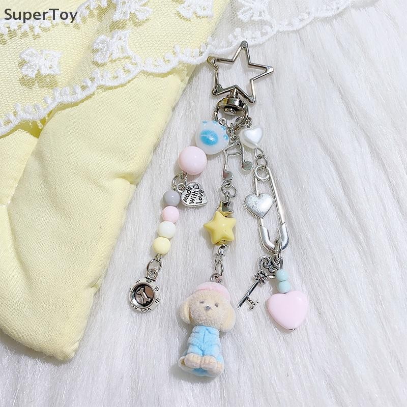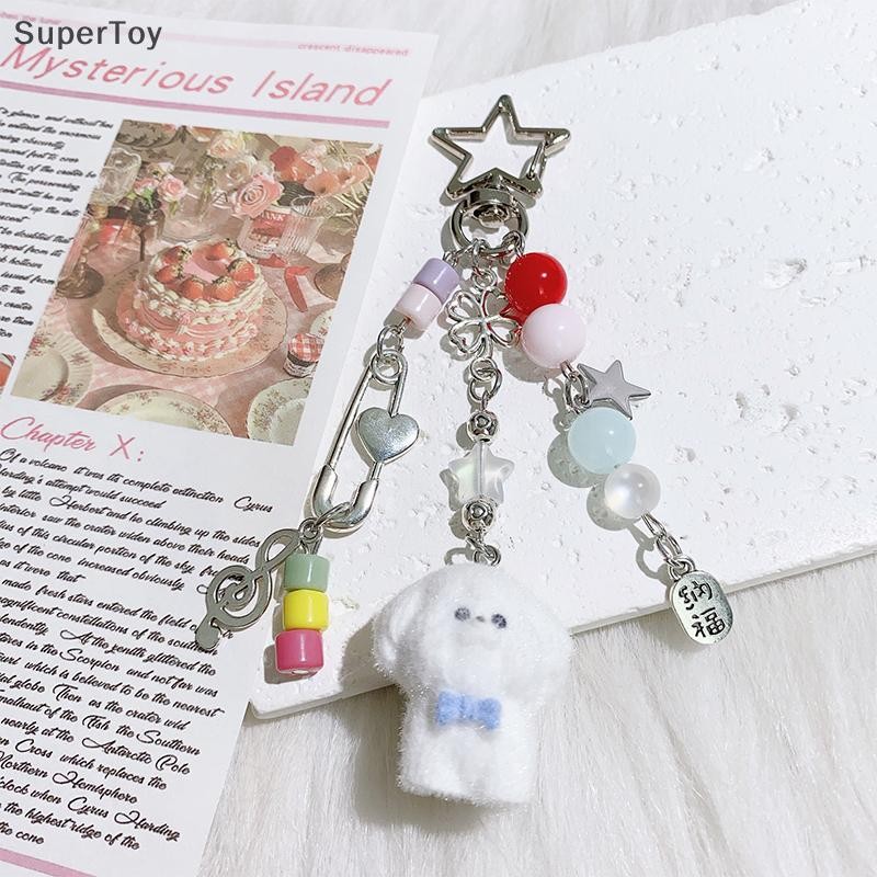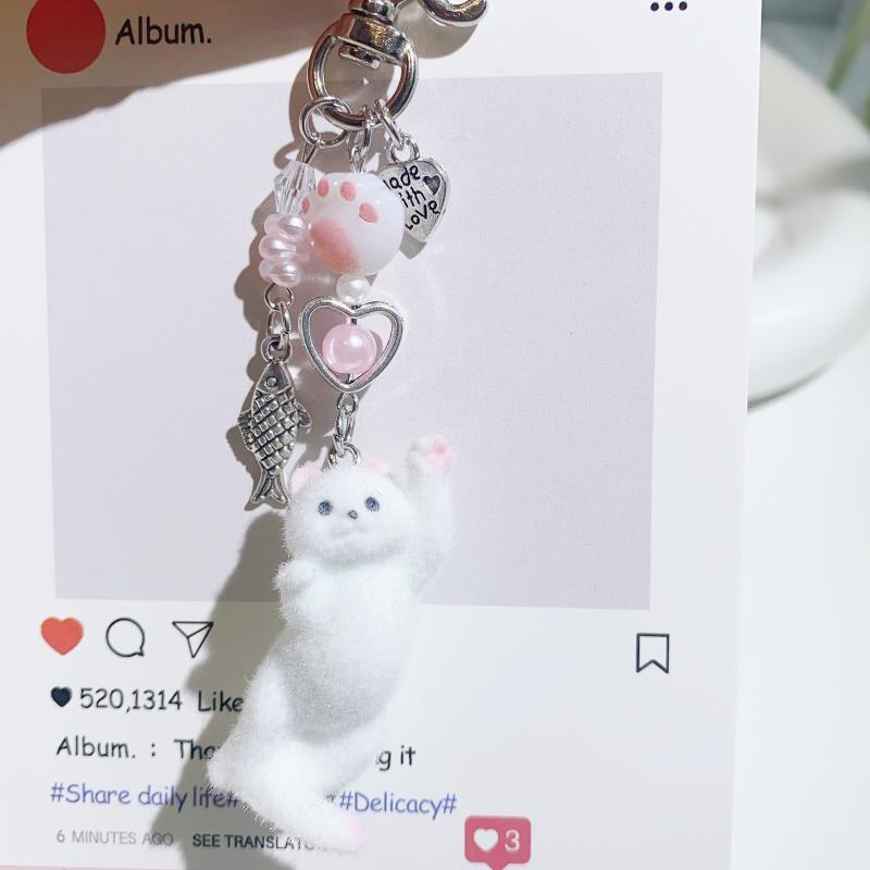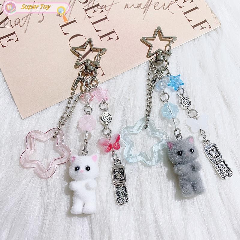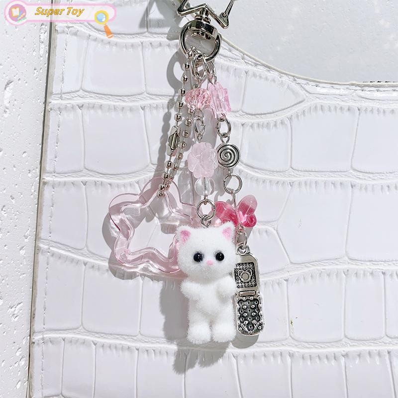 SUPERTOY Criativo Bonito Flocado Gatinho Morango Pingente Chaveiro Doce Animal Mochila Decoração Acessórios Melhor Amigo