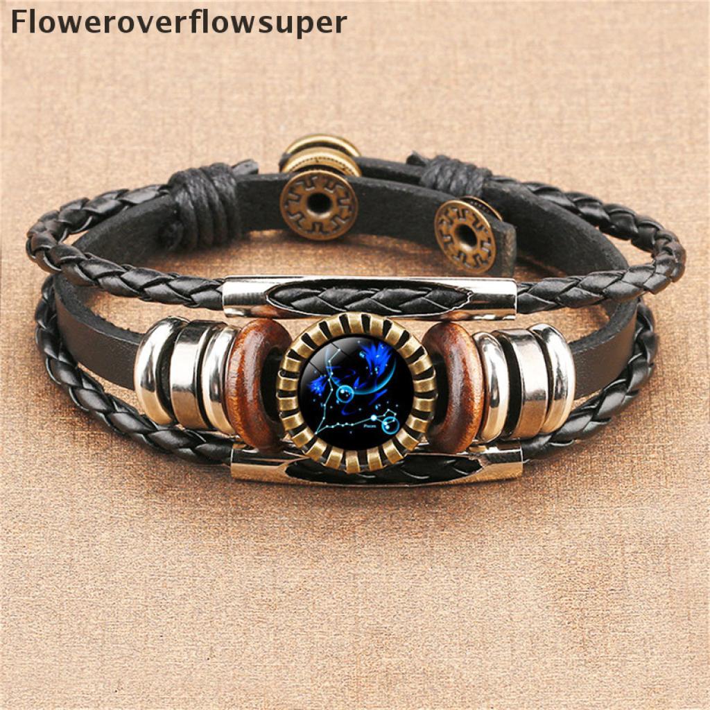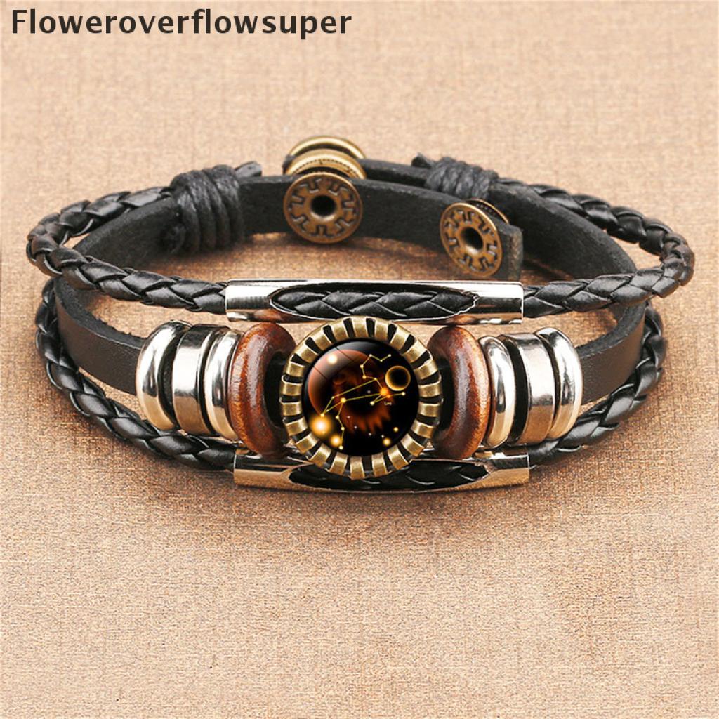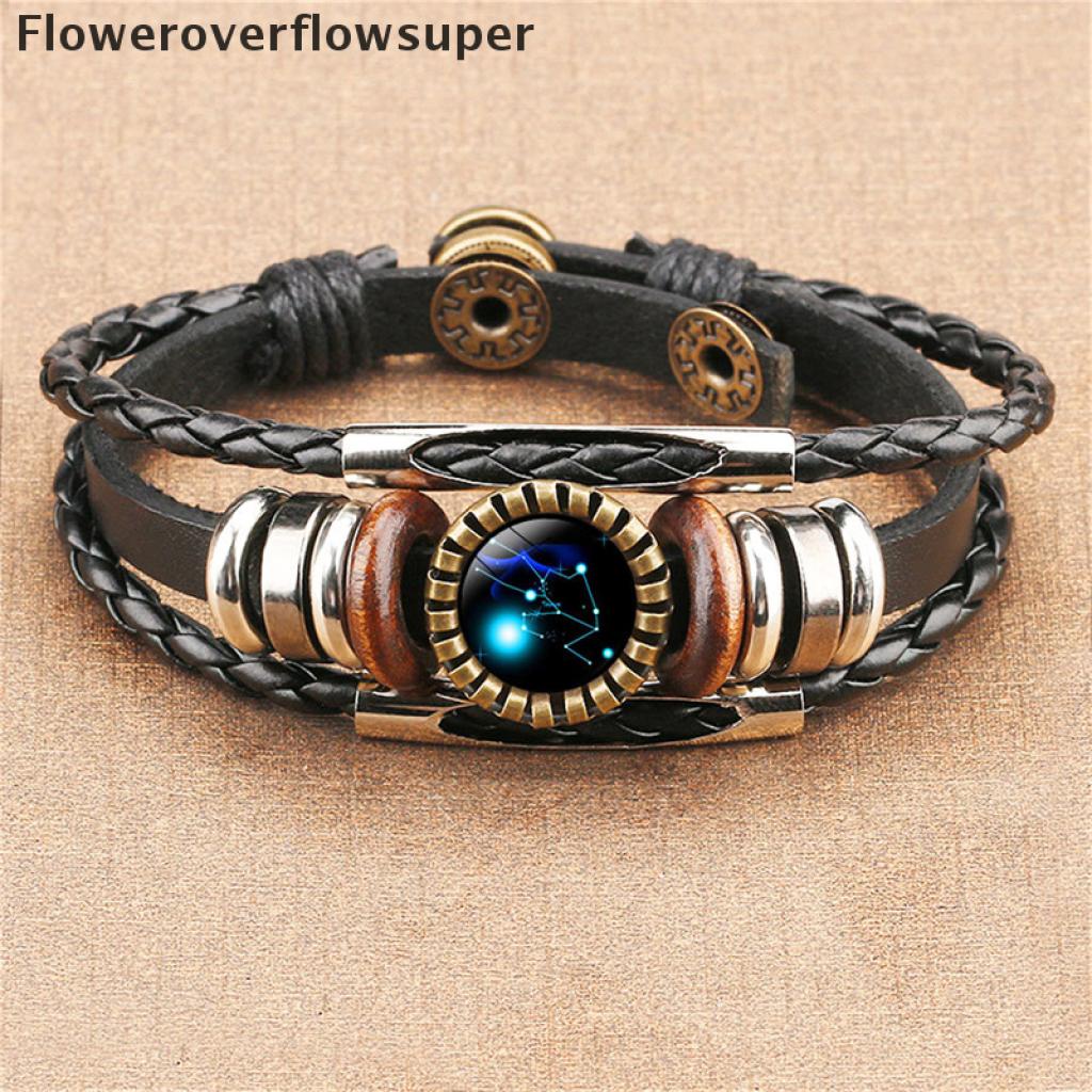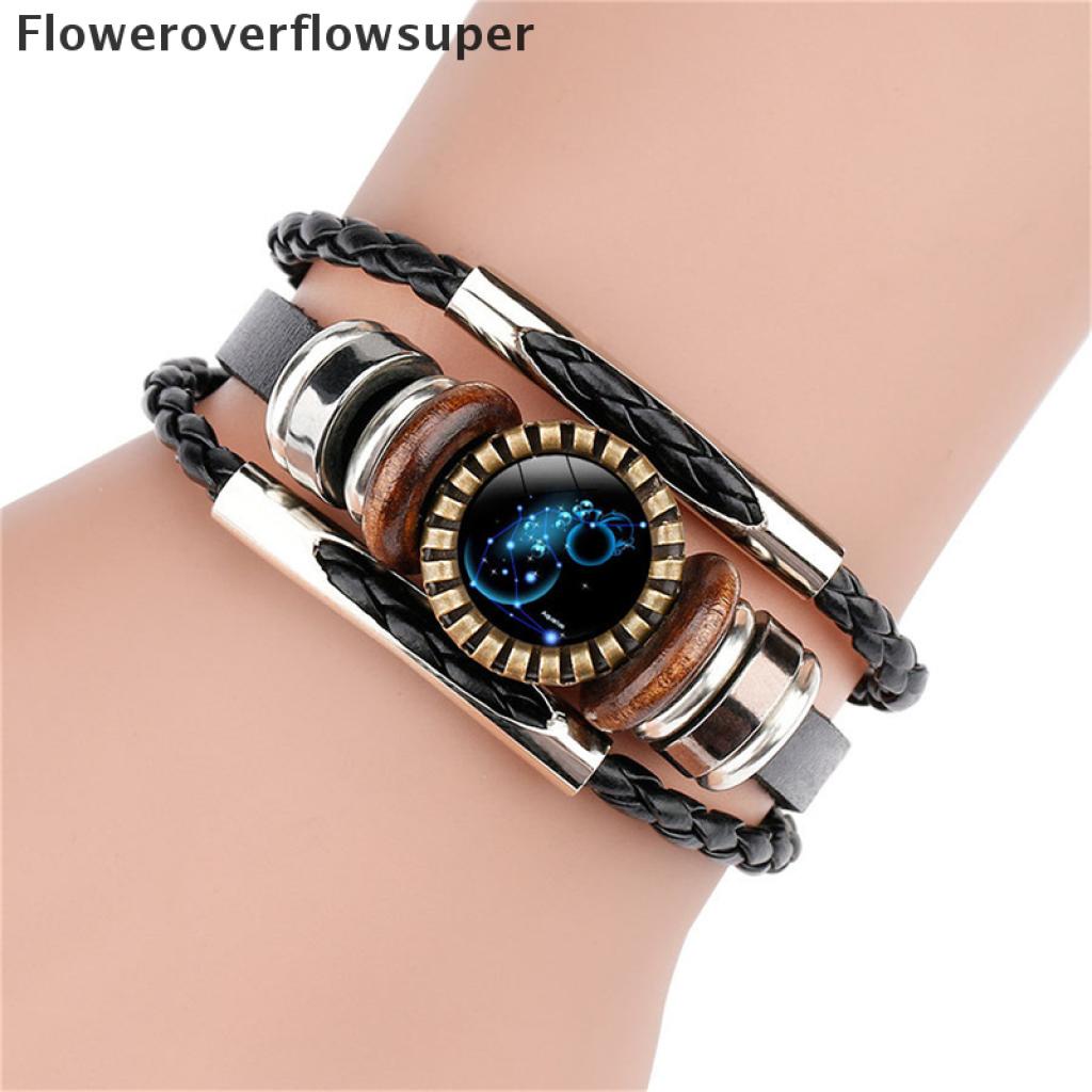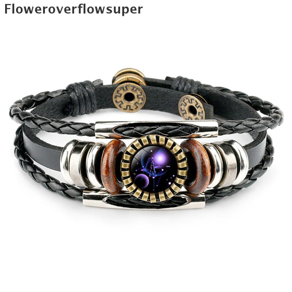 [Nobre Vida] 12 Constelação Zodíaco Sinal De Couro Trançado Preto Câncer idro Cúpula Jóias Punk Homens