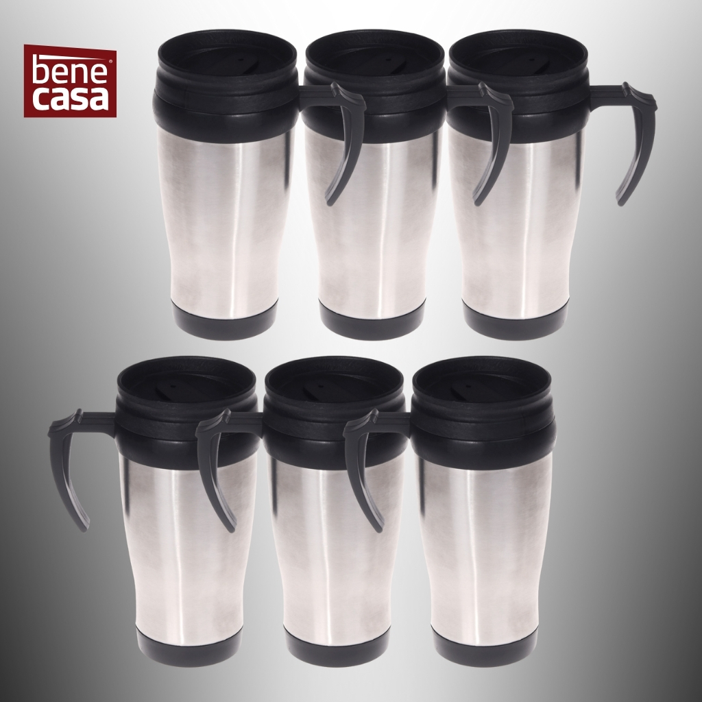 Kit 6 Canecas Térmicas Inox 400ml com Tampa e Alça – Copo Térmico Café, Viagem e Escritório