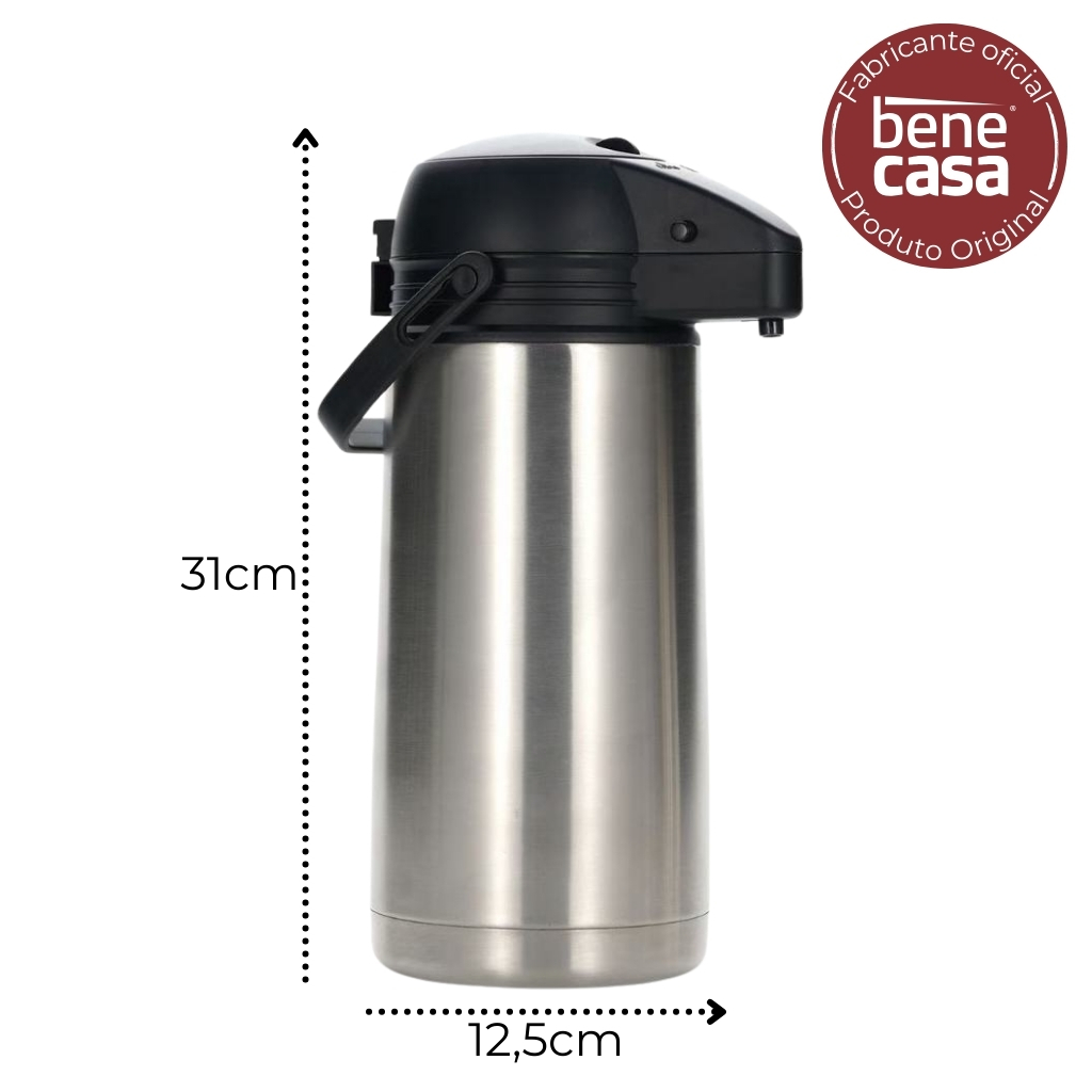 Garrafa Térmica em Aço Inox Bene Casa 1,9L / 2,5L – Quente e Frio - Interior em INOX