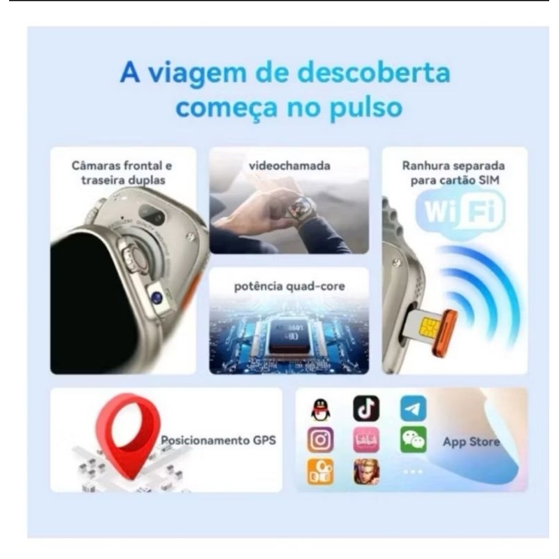 Smartwatch android 5G com 7 pulseiras 64GB chip e câmera frontal e traseira relógio inteligente lançamento26