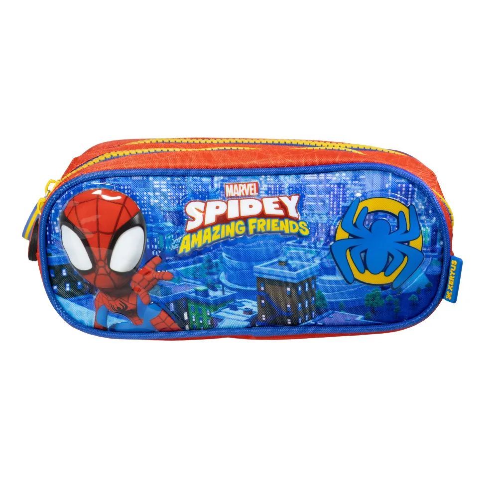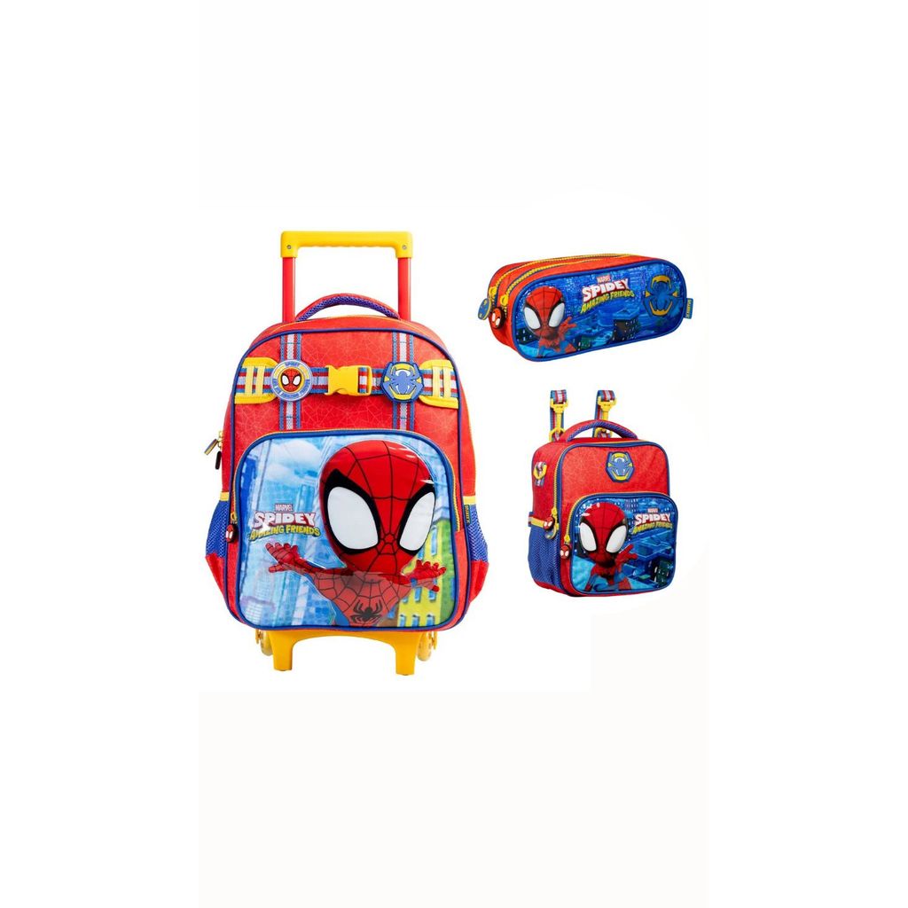 kit Mochila de Rodinhas Escolar 16 + Estojo Duplo + Lancheira Spidey S