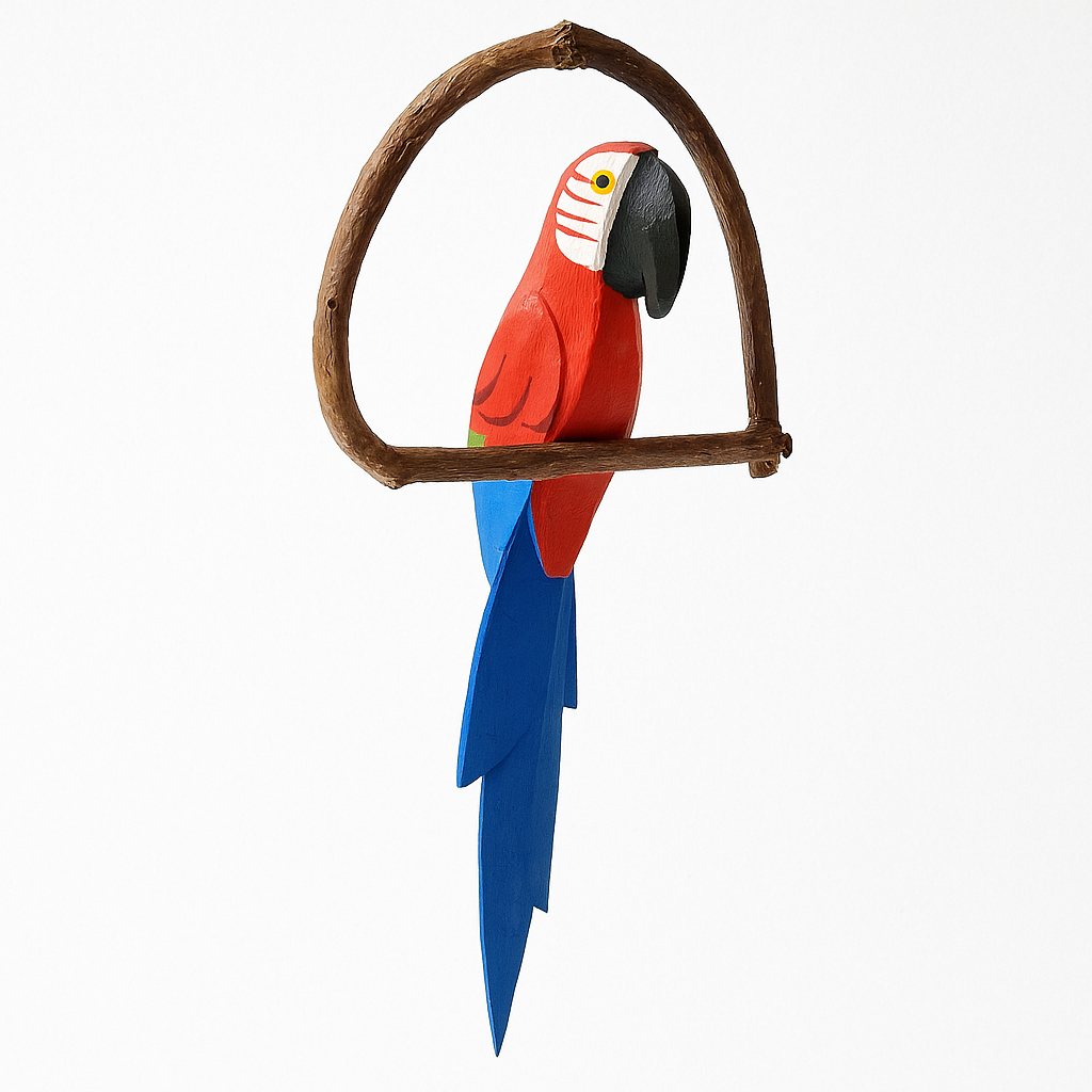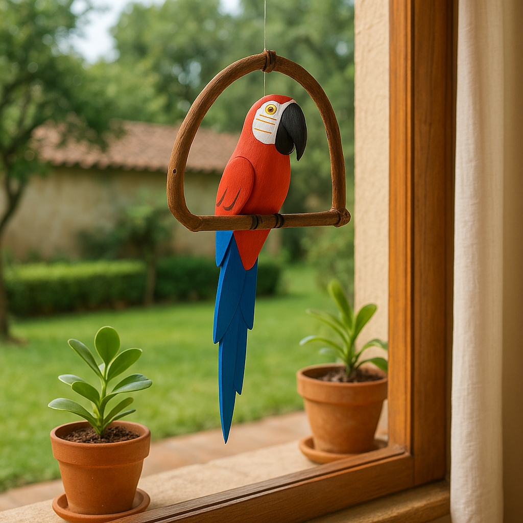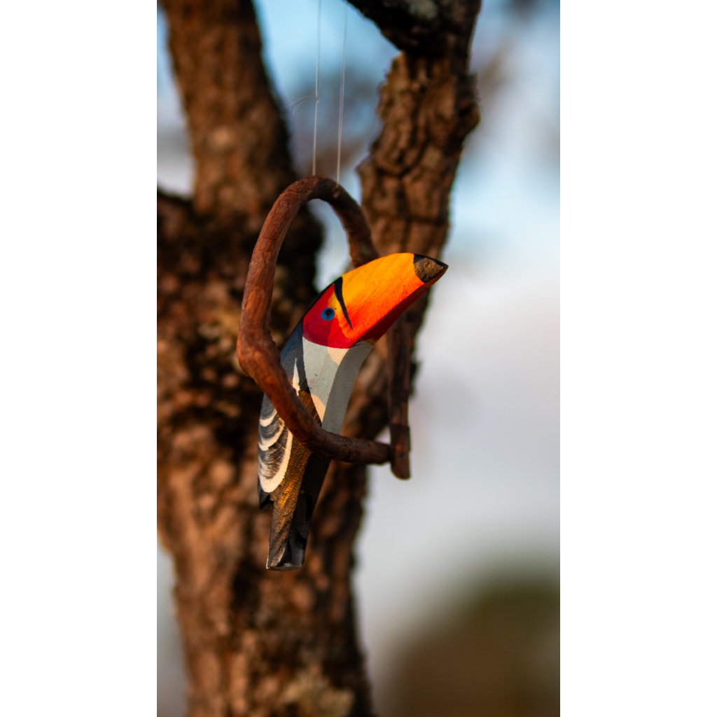 Pássaro Artesanal em Madeira no Cipó - Mini Tucano ou Arara | Decoração de Jardim Varandas