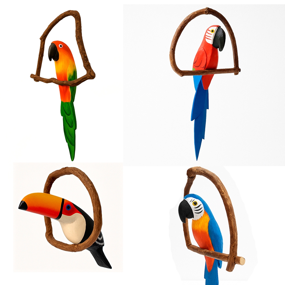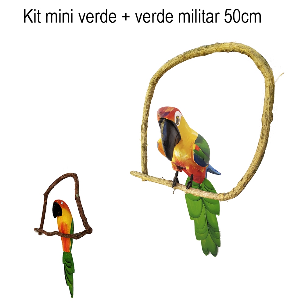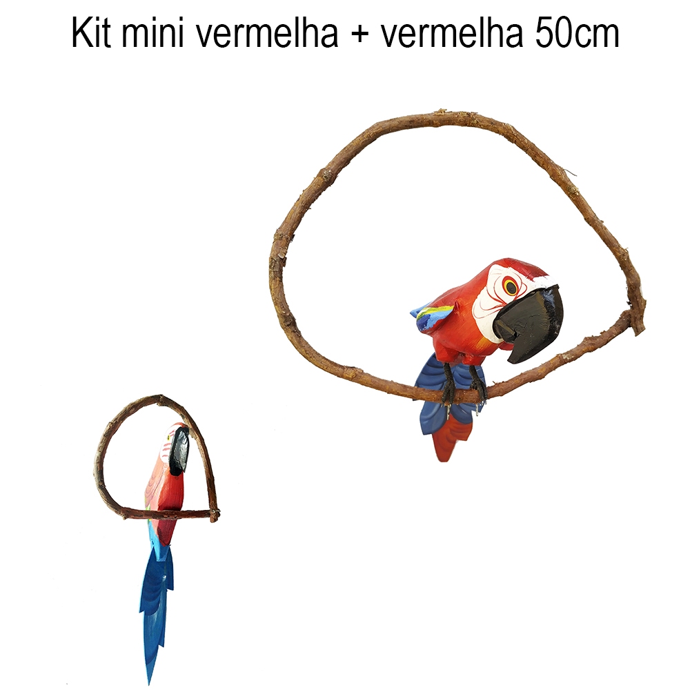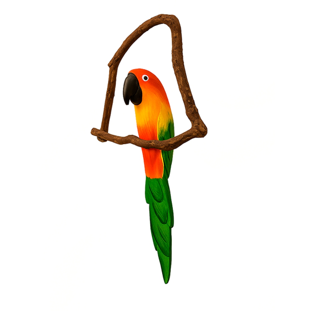 Pássaro Artesanal em Madeira no Cipó - Mini Tucano ou Arara | Decoração de Jardim Varandas