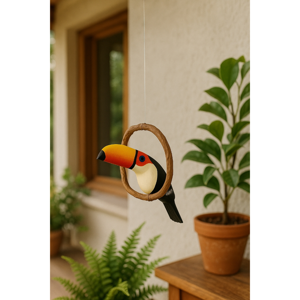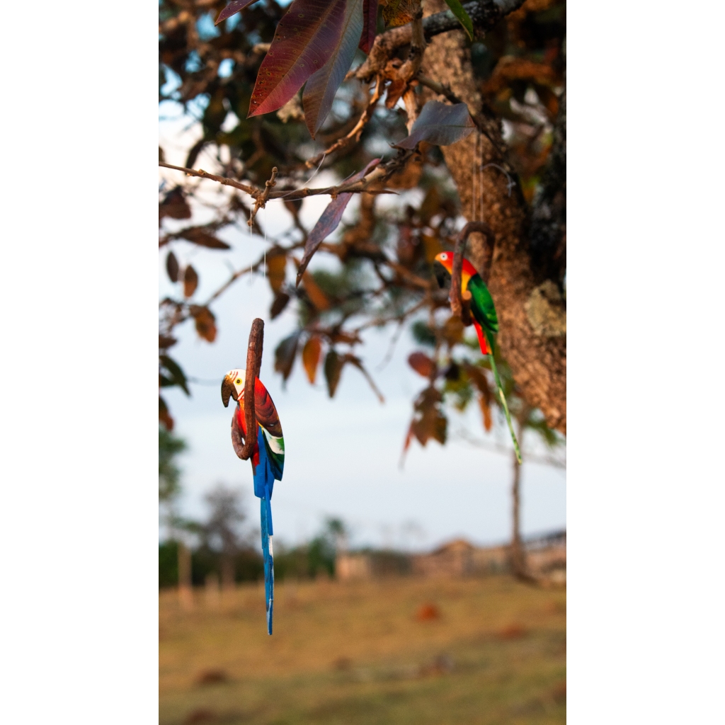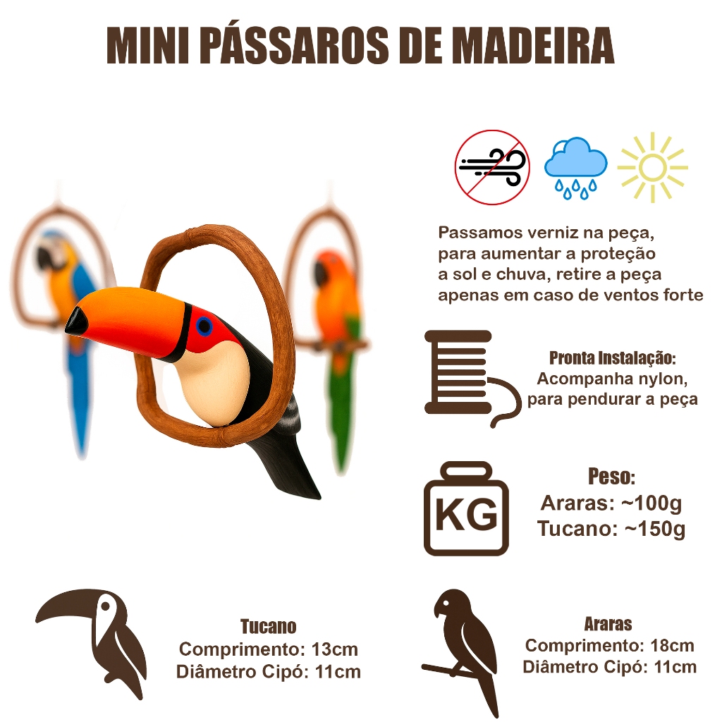 Mini Pássaro Arara Azul Vermelha Verde Tucano Madeira Artesanal 20cm Cipó Decoração