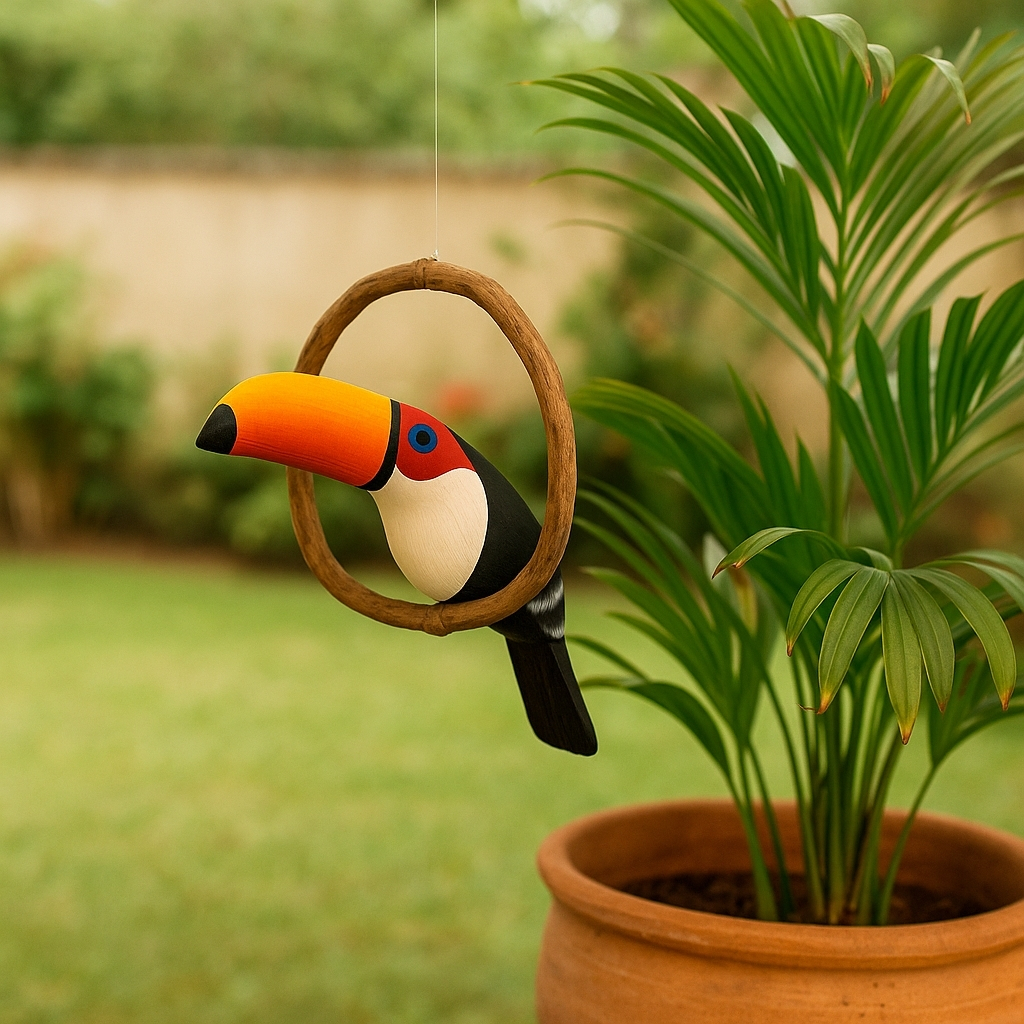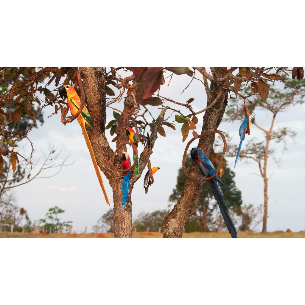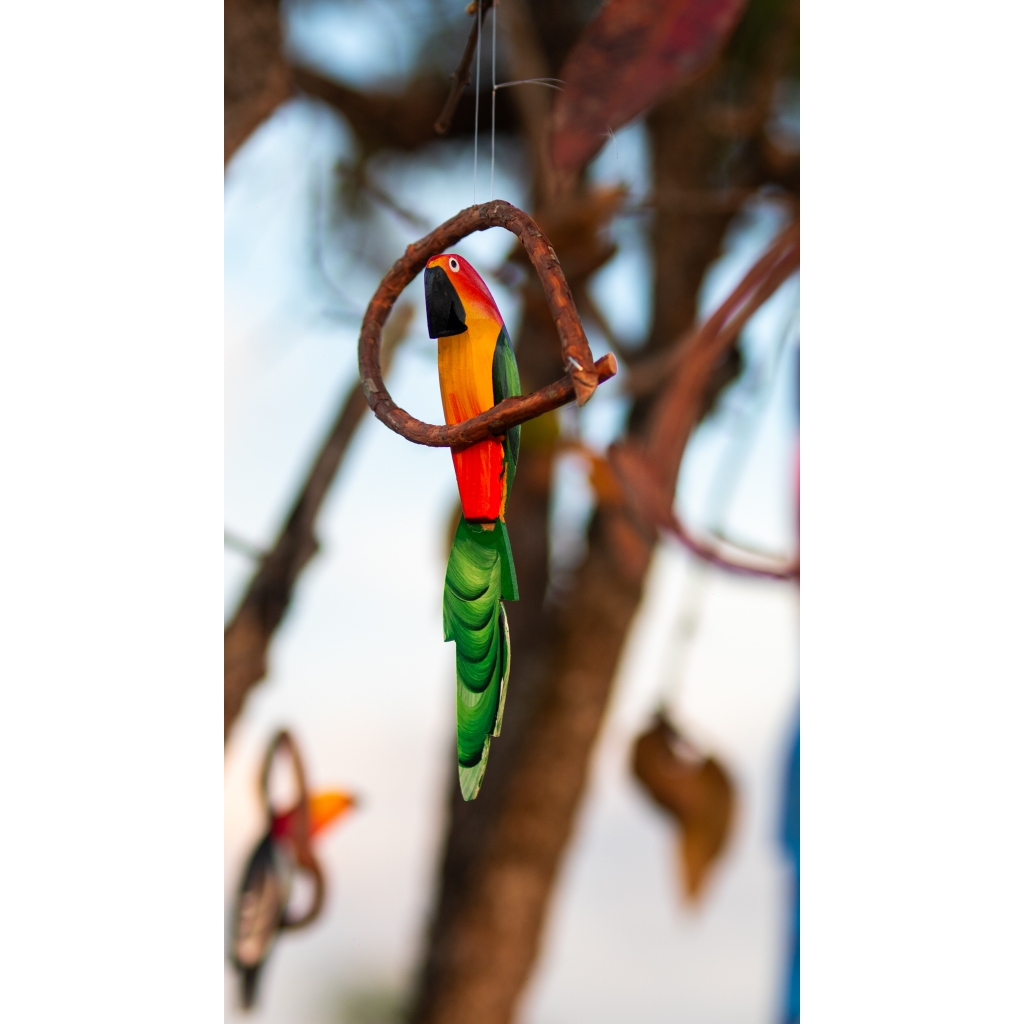 Mini Pássaro Arara Azul Vermelha Verde Tucano Madeira Artesanal 20cm Cipó Decoração