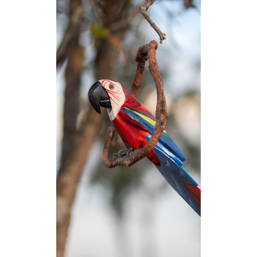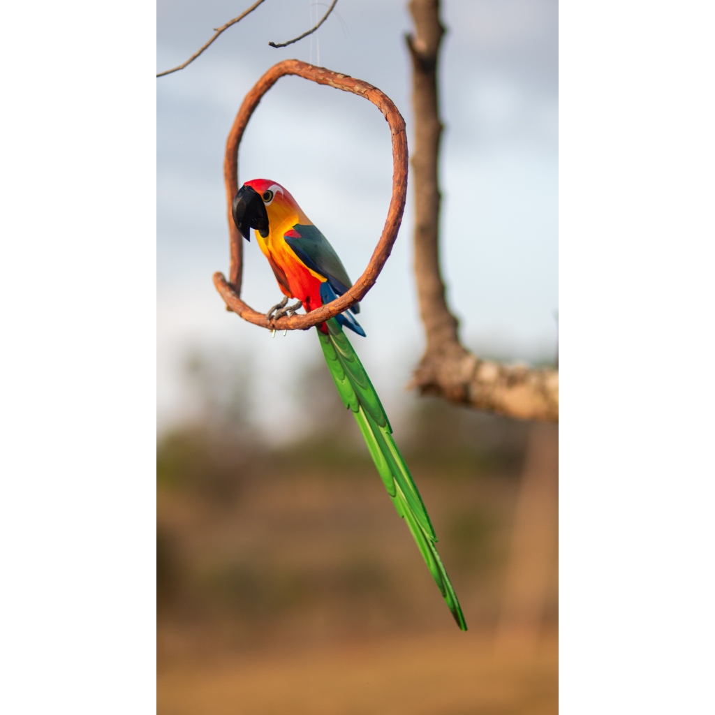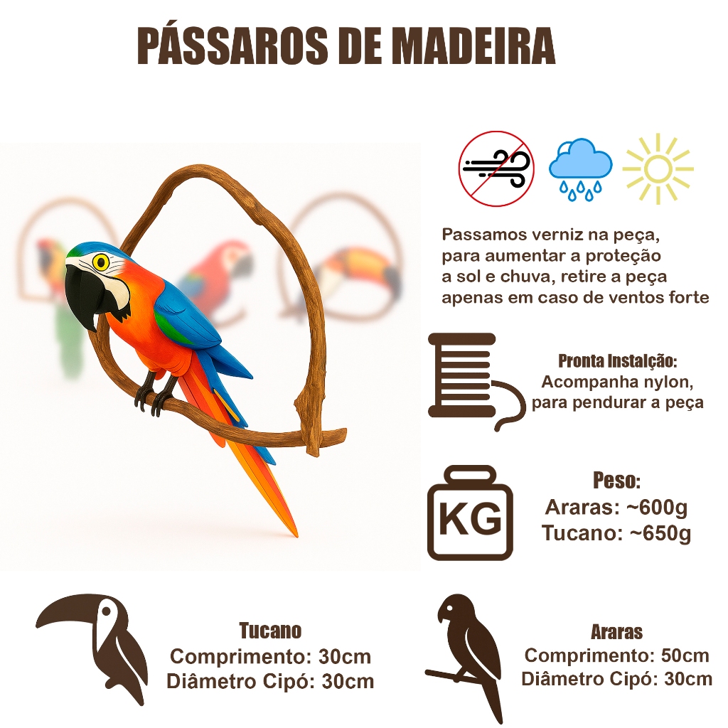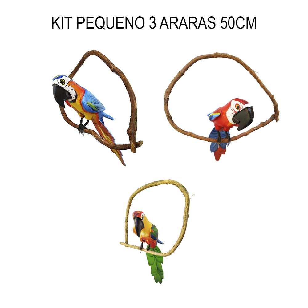 Kit 3 Araras Pássaros De Madeira No Cipó Grande Artesanal Decoração