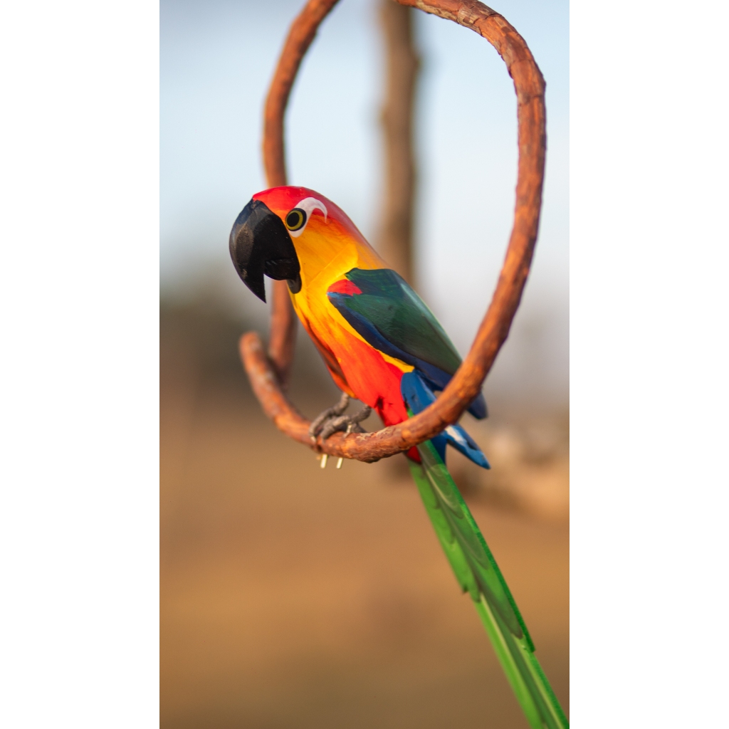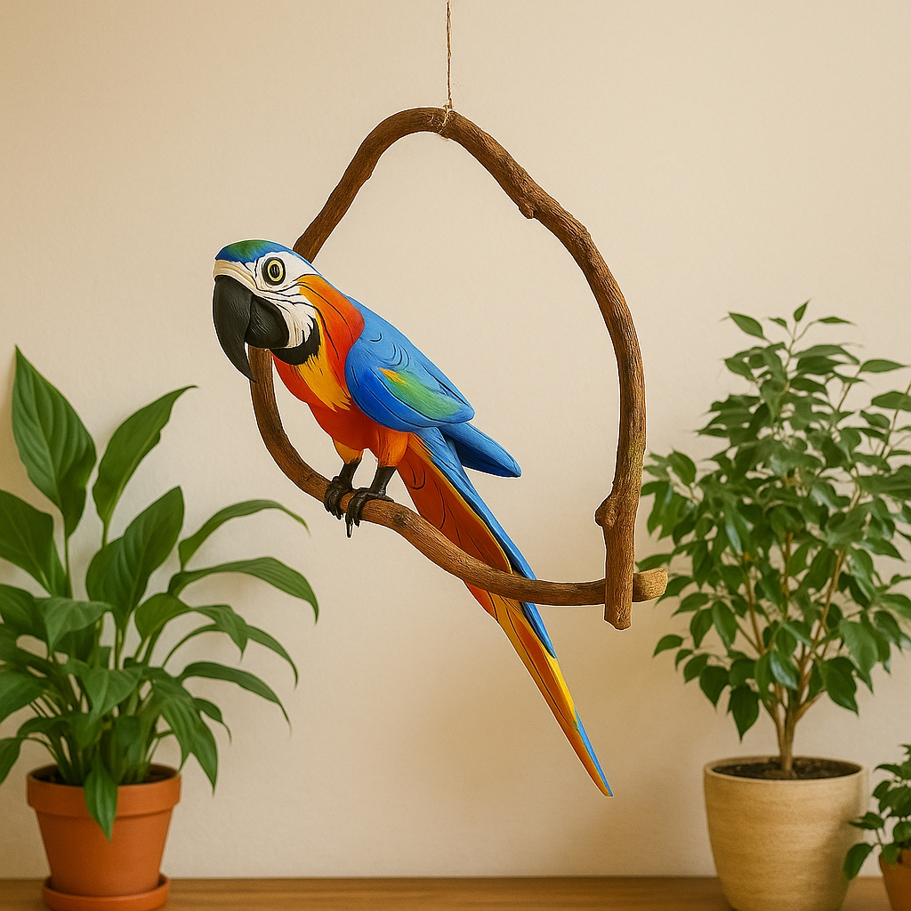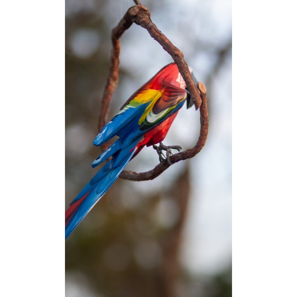 Kit 3 Araras Pássaros De Madeira No Cipó Grande Artesanal Decoração