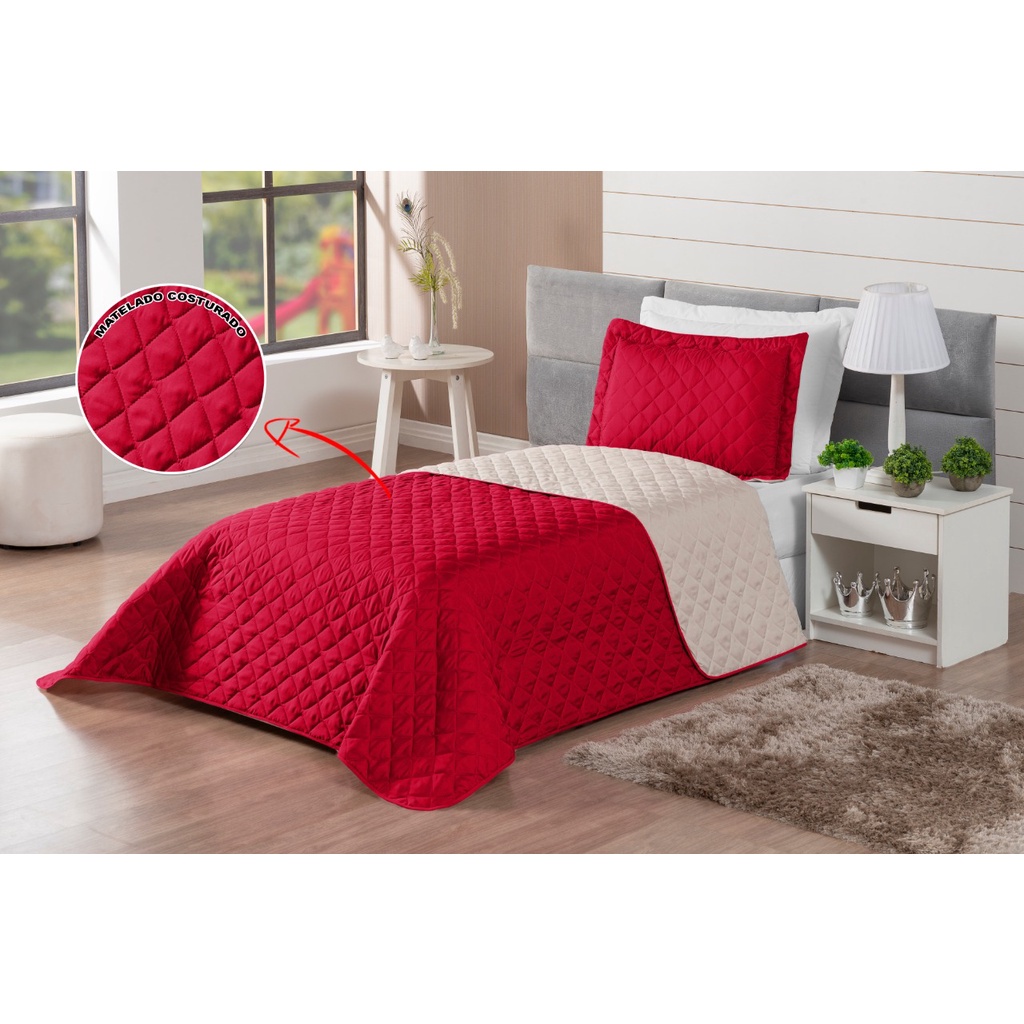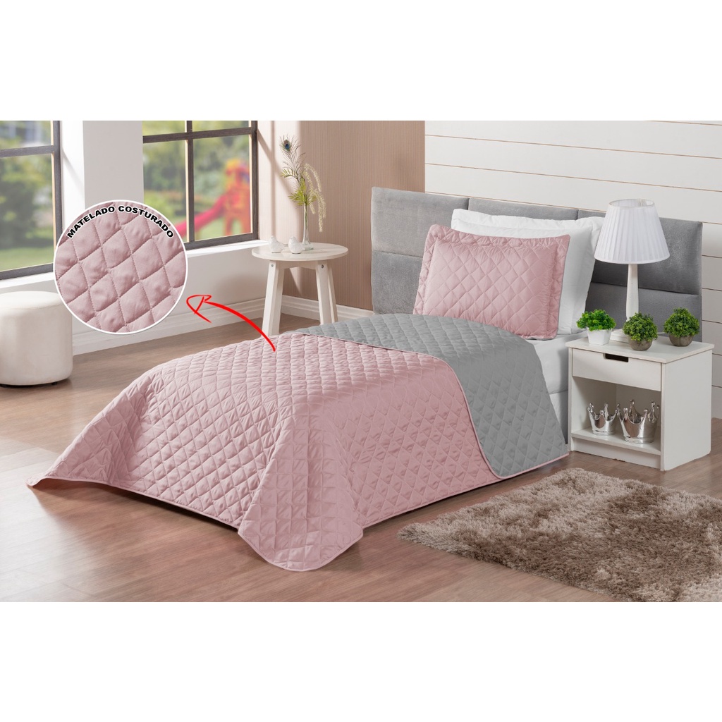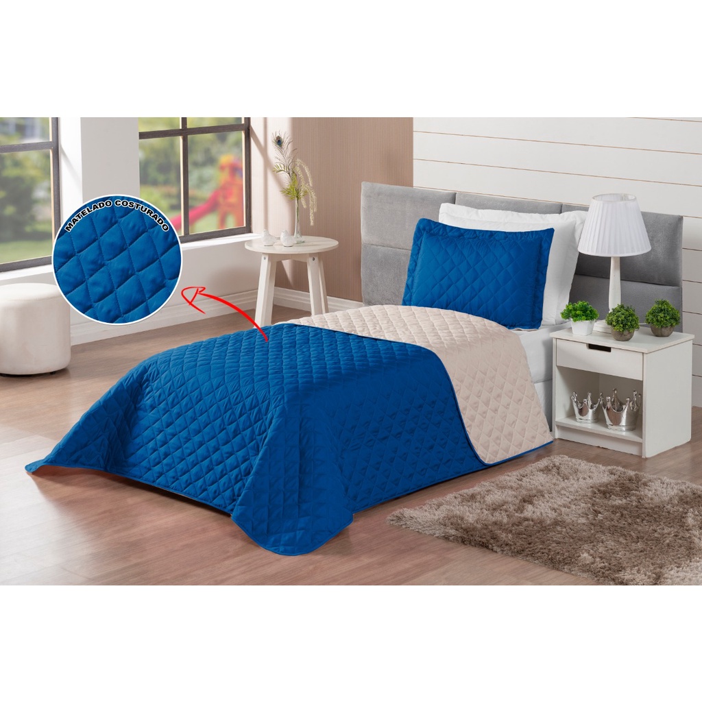 Kit Colcha Cobre Leito Matelado Realeza Dupla Face Solteiro 2 Peças