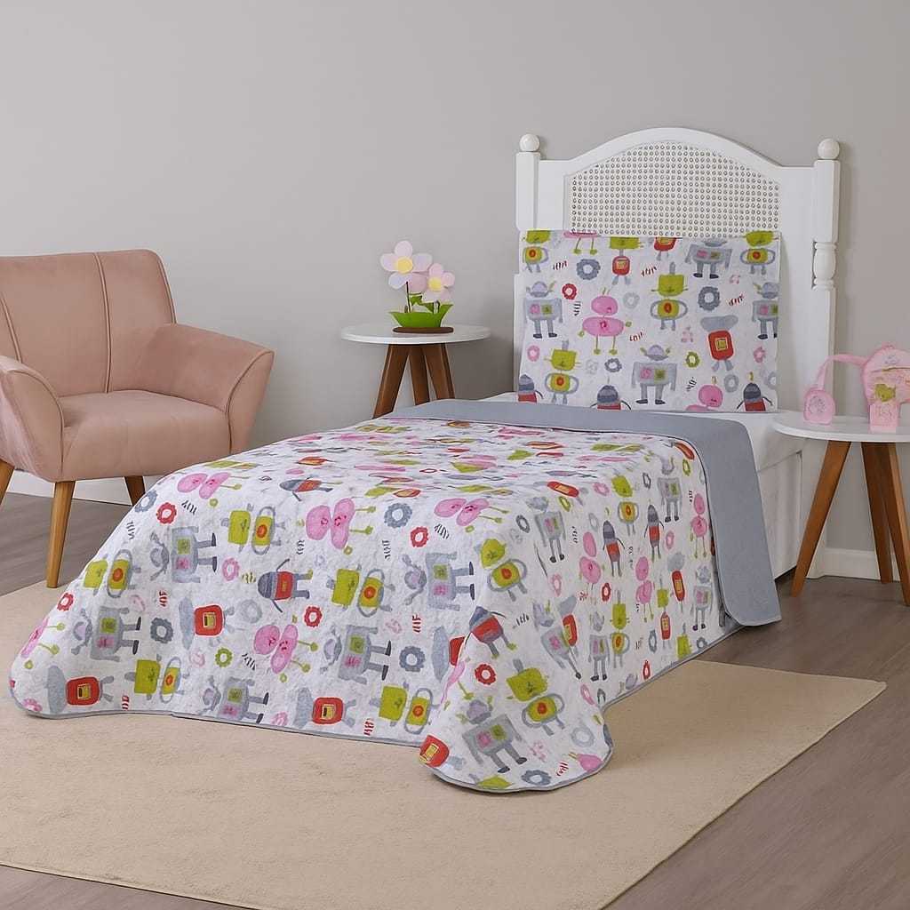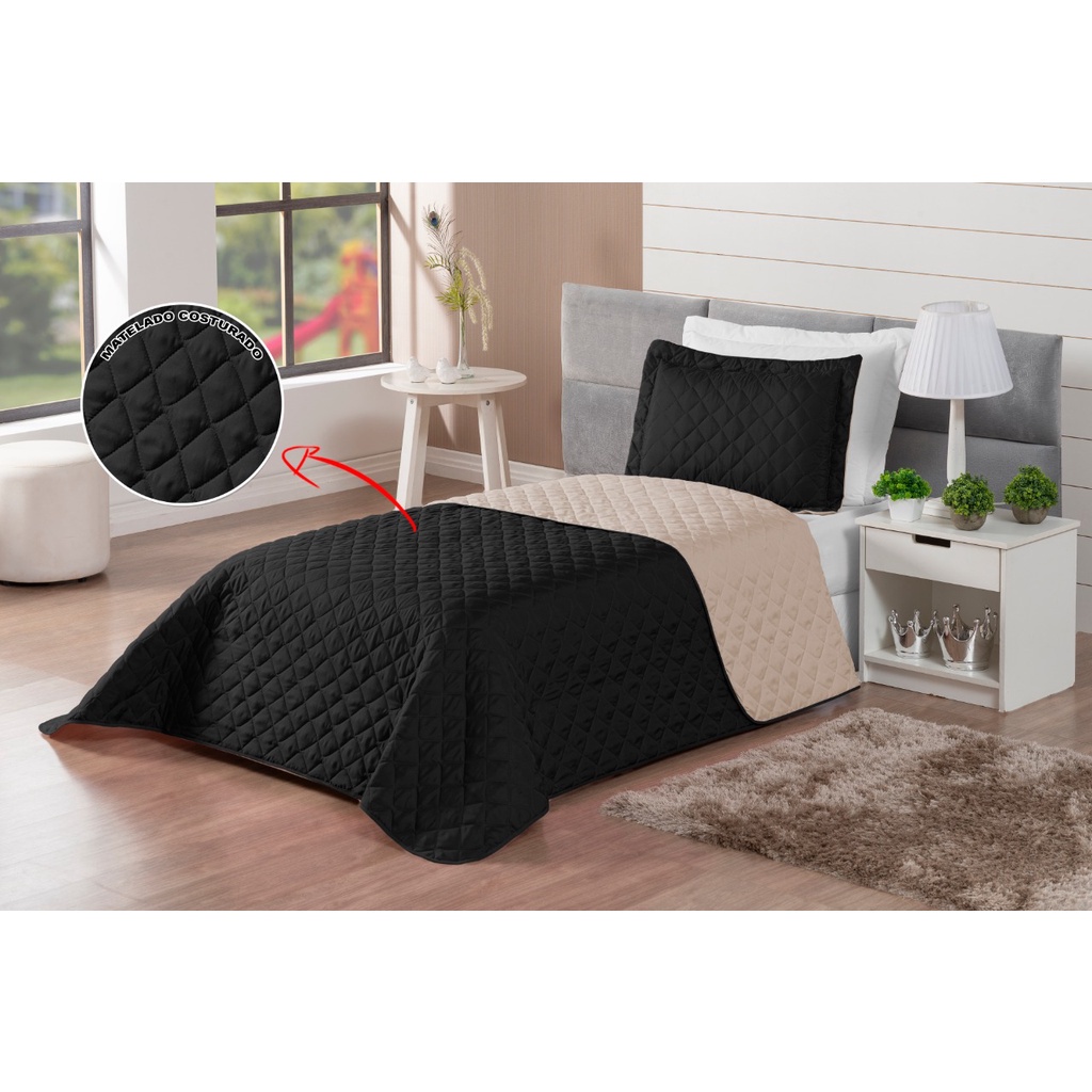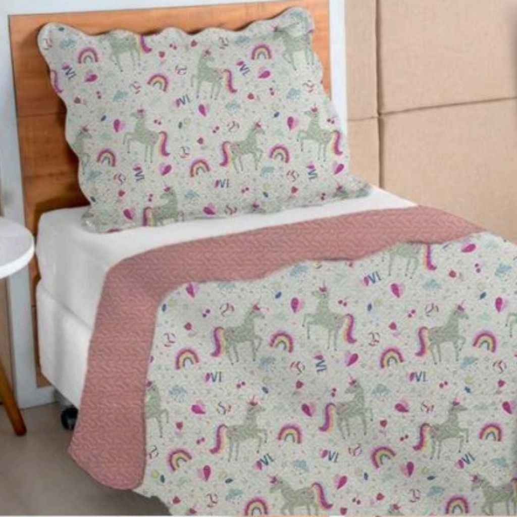 Kit Colcha Cobre Leito Matelado Realeza Dupla Face Solteiro 2 Peças