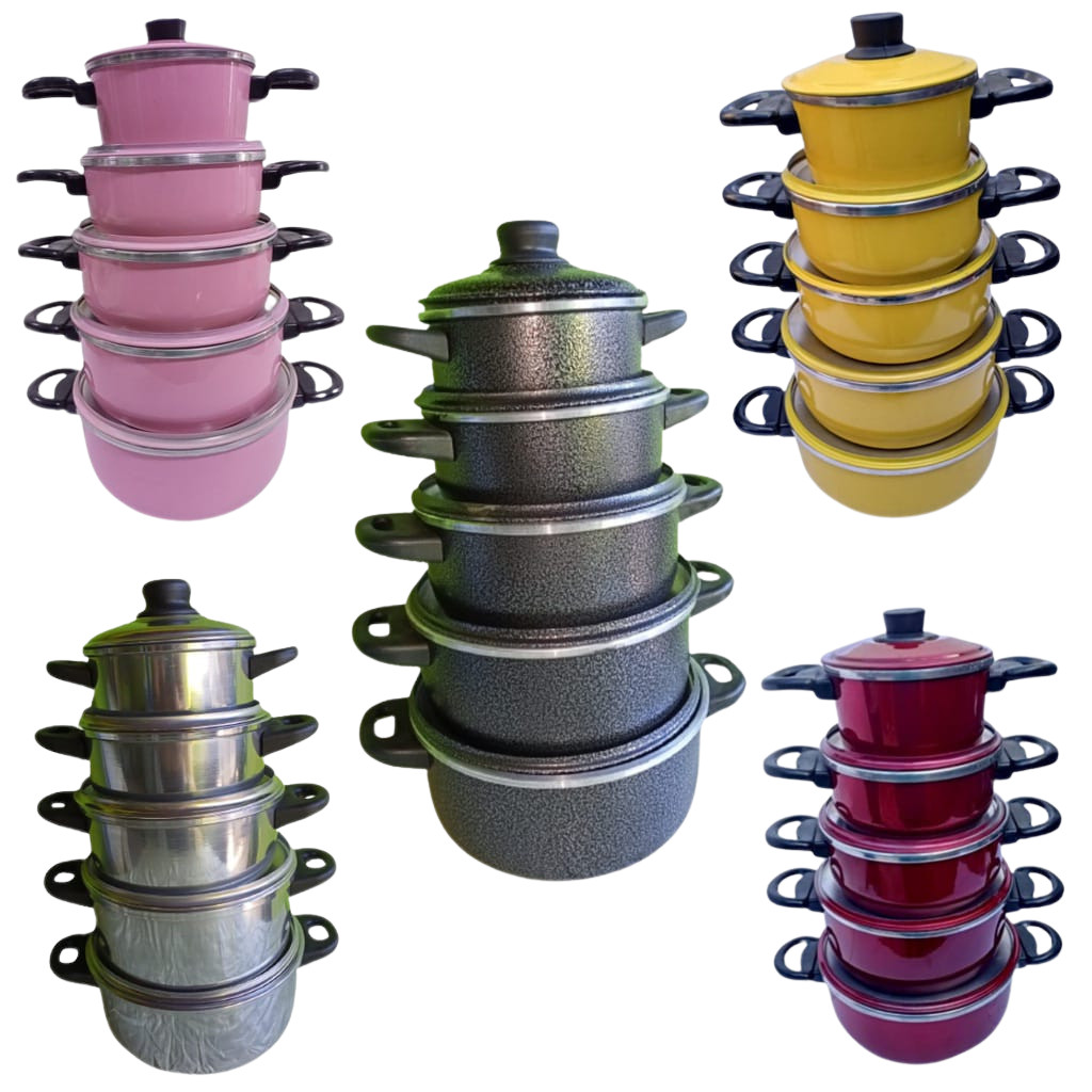 Jogo de Panelas Blogueira Conjunto 5 Peças Alumínio Pintado Caçarolas Retas (14 a 22) Monte Cristo Alumínio Diversas Cor