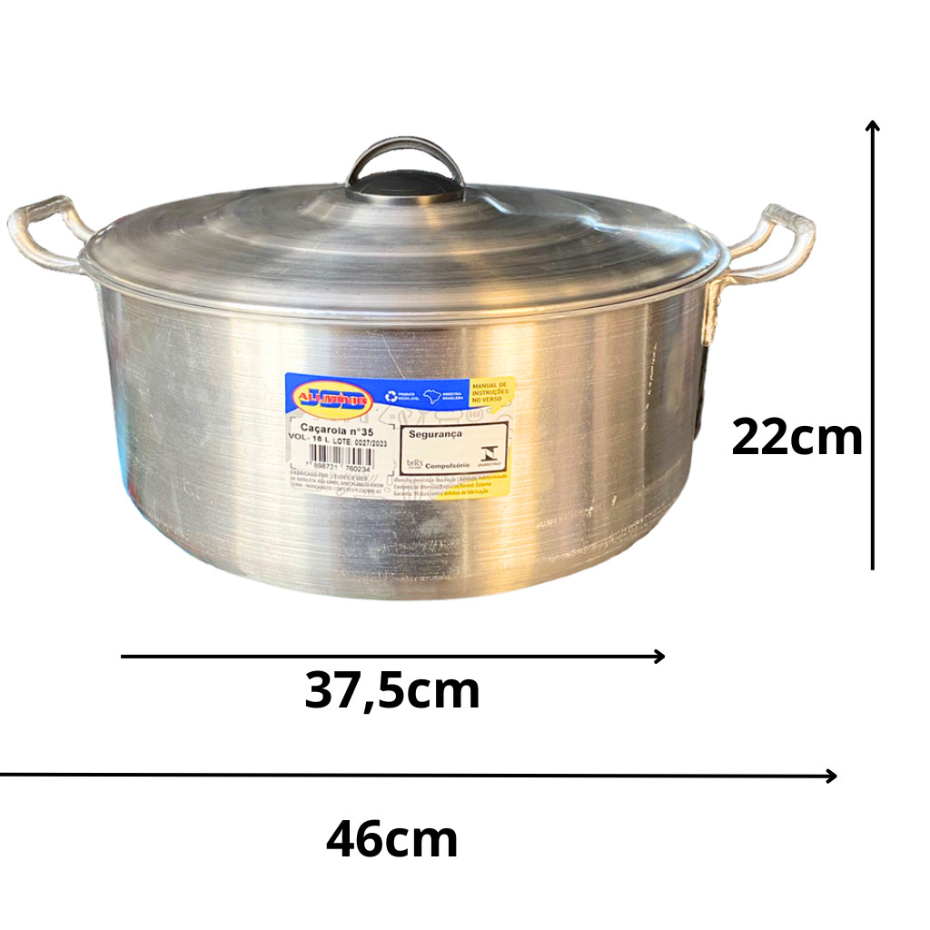 Caçarola Linha Hotel N 35 18 Litros Restaurante Industrial Alumínio - Bares Escolas - Cervejeiro - JSD
