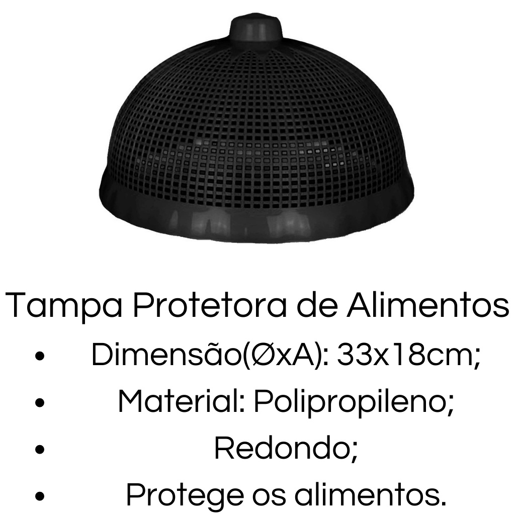 Kit 5 Cobre Bolo Telado Protetor Alimentos Redondo Plástico 33x18cm