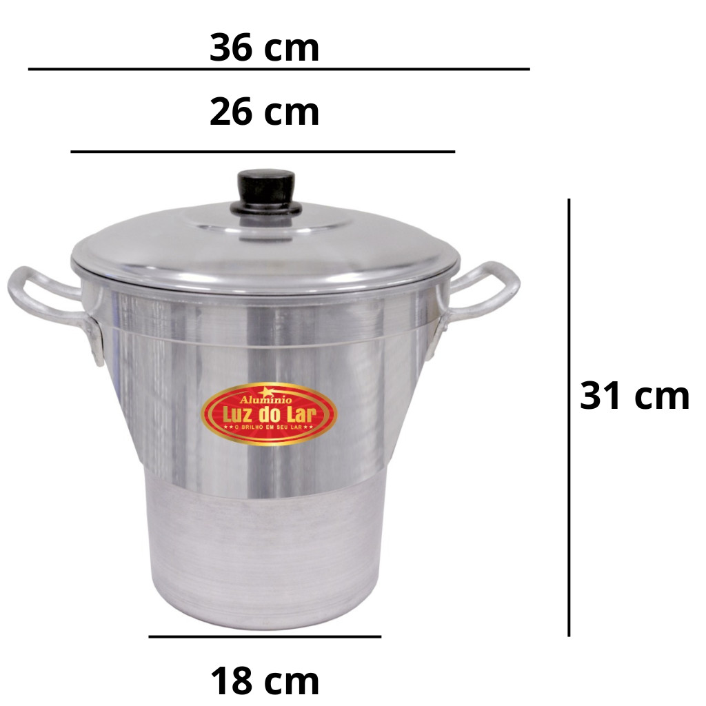 Cuscuzeira Grande Alumínio Luz do Lar Hotel Industrial N°26 Lixado Cuscuzeiro Para Grandes Quantidades - 9,7 Litros
