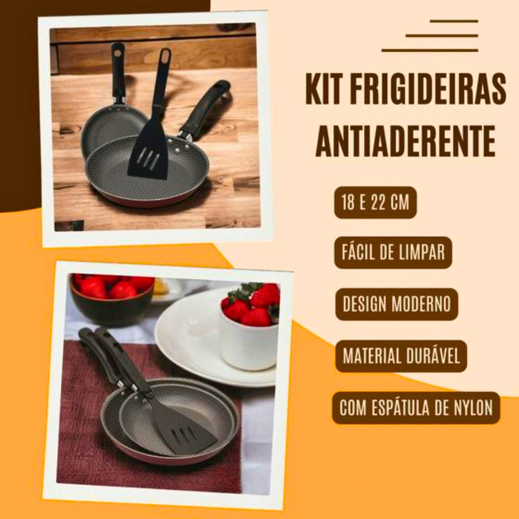 Jogo de Frigideiras 3 Peças Antiaderente Francesa 22cm/18cm com Espátula Excelente Qualidade Alumínio Ironte