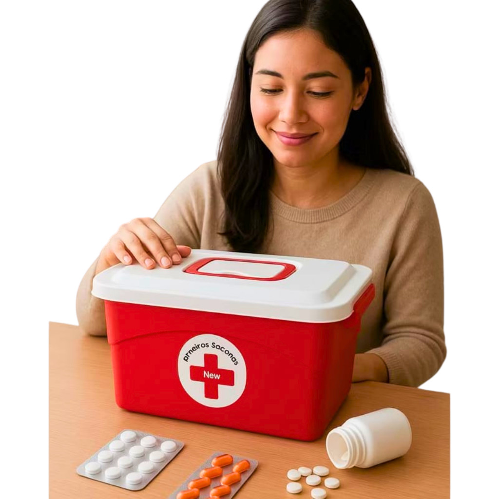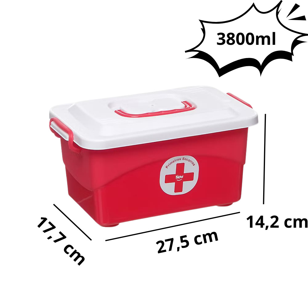 Maleta Caixa Para Medicamentos 3,8 Litros Com Alça e Traca Porta Medicamentos Enfermagem Primeiros Socorros New Plastic