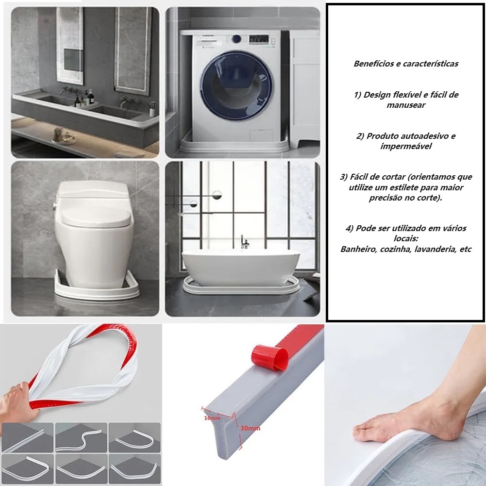 Barreira Retenção Água impermeável Pia Cuba Cozinha Box Chuveiro Banheiro Barra Silicone Flexível