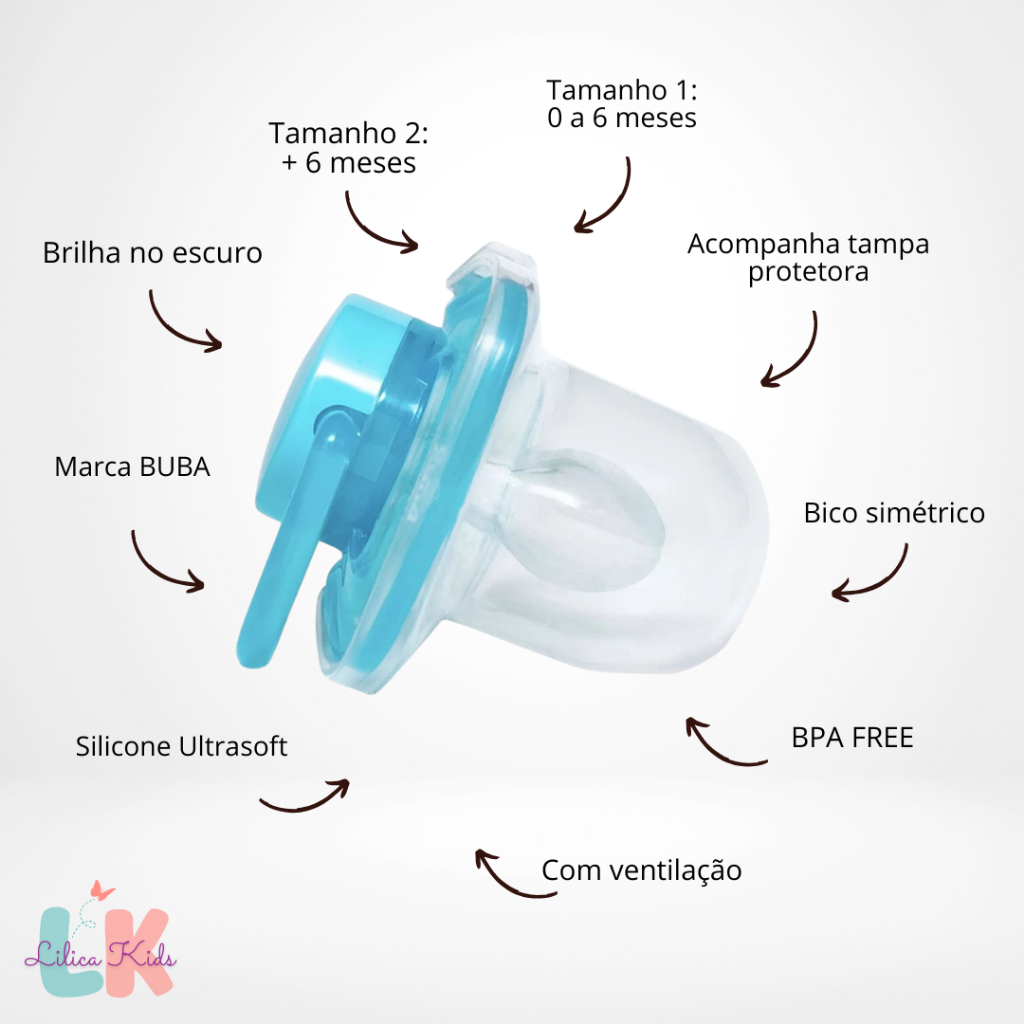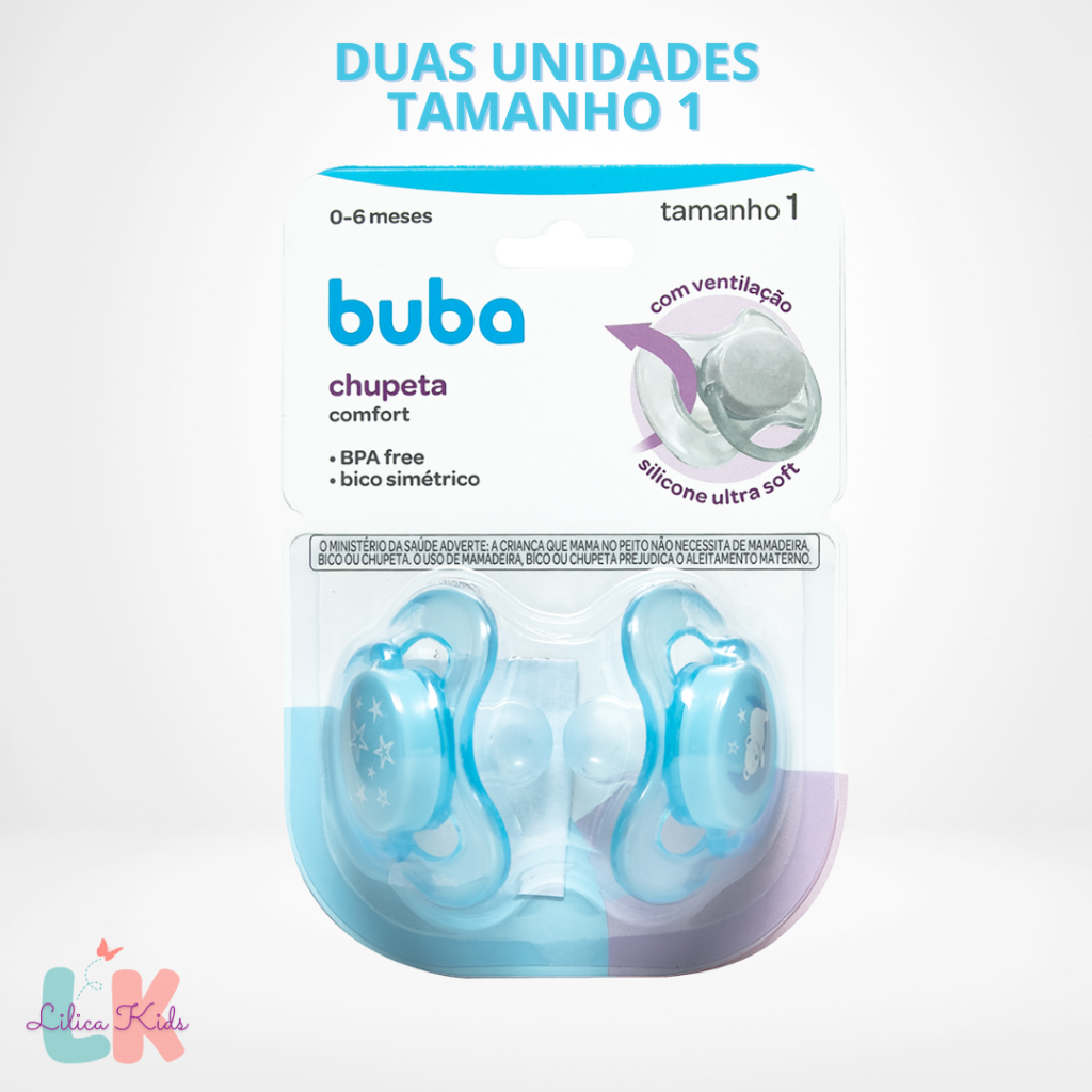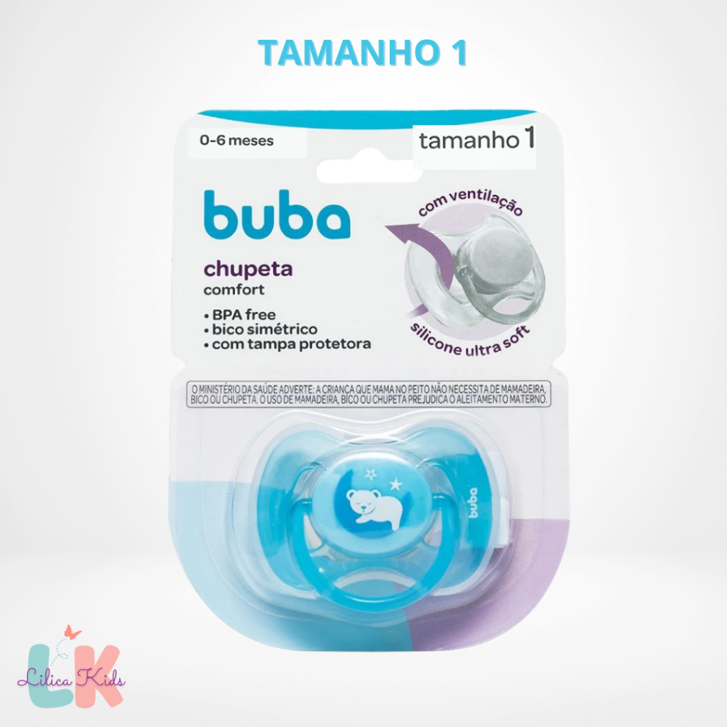 Chupeta Menino Confort Tamanho 1 e 2 com Tampa Protetora e Bico Simétrico Buba