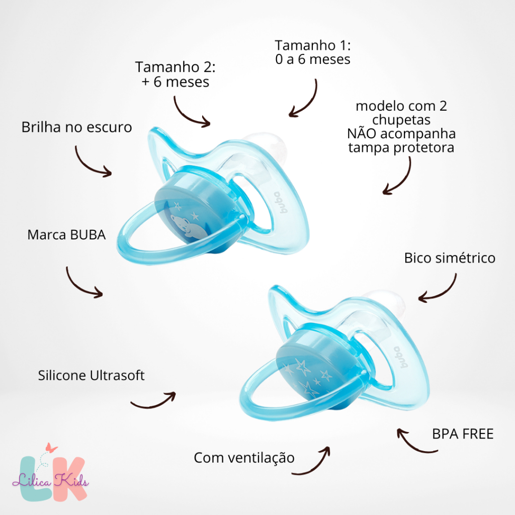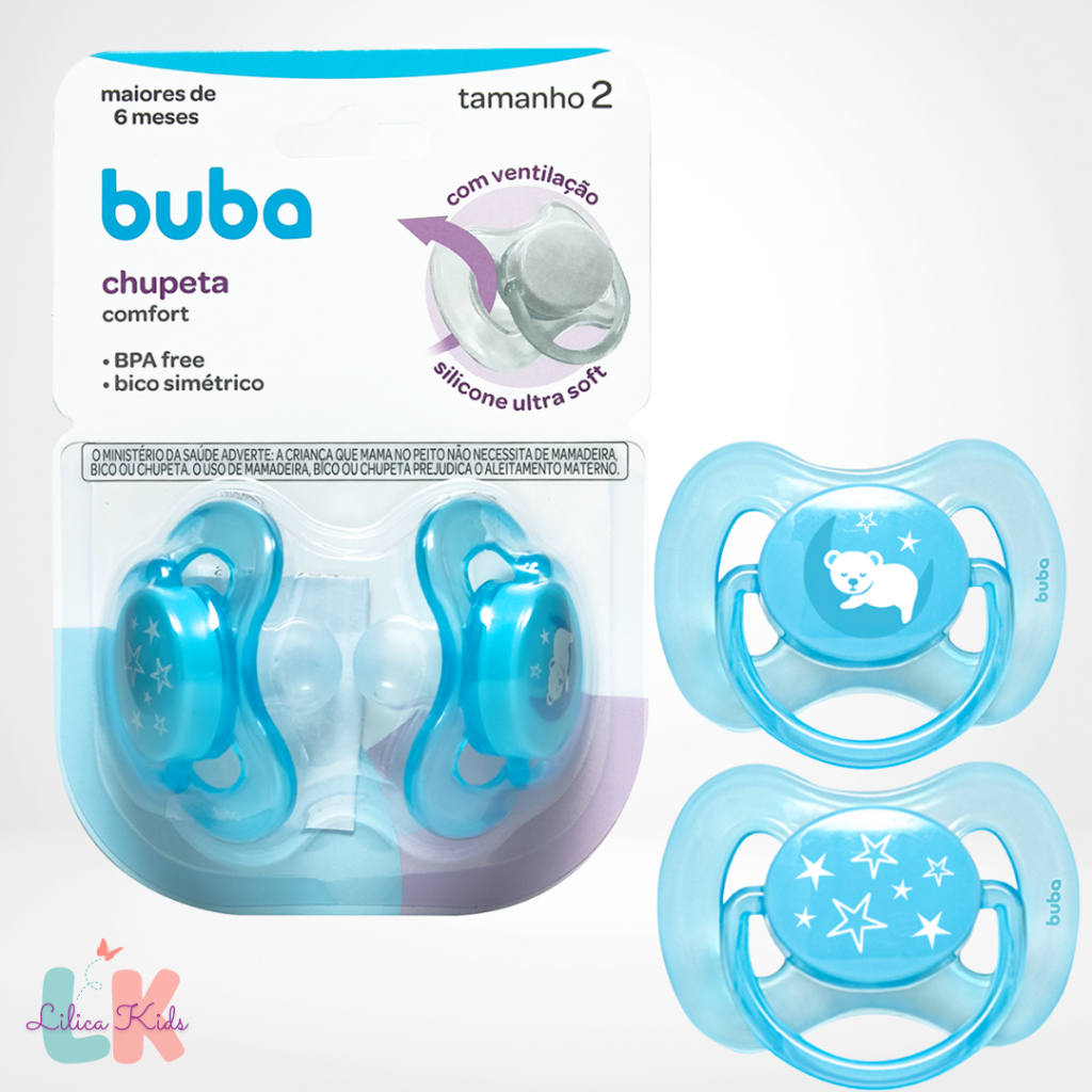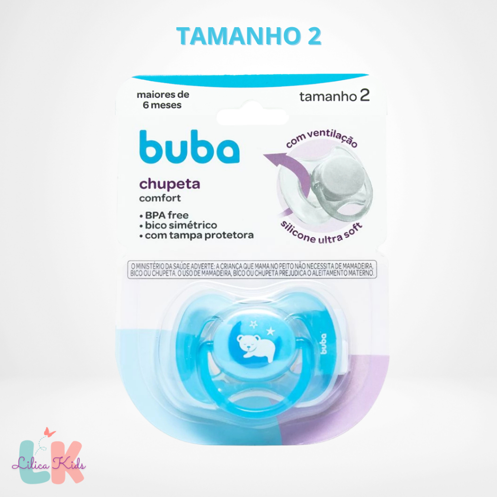 Chupeta Menino Confort Tamanho 1 e 2 com Tampa Protetora e Bico Simétrico Buba