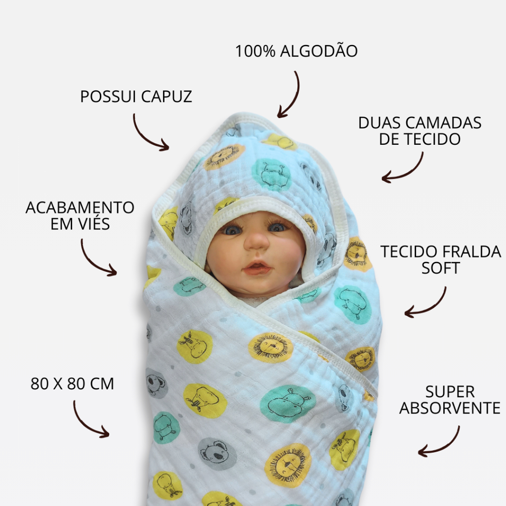 Toalha Fralda Banho de Bebê com Capuz Tecido Soft 100% Algodão 80cm x 80cm