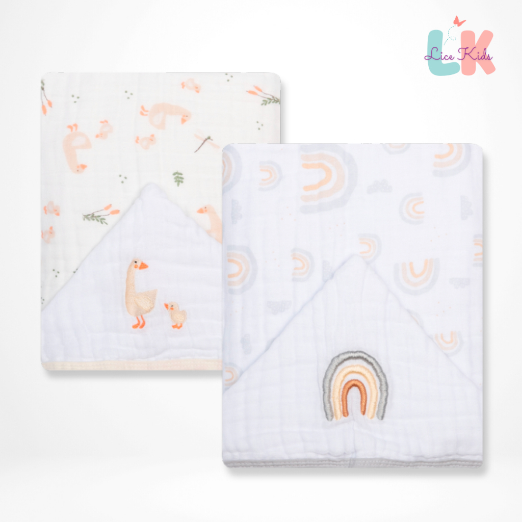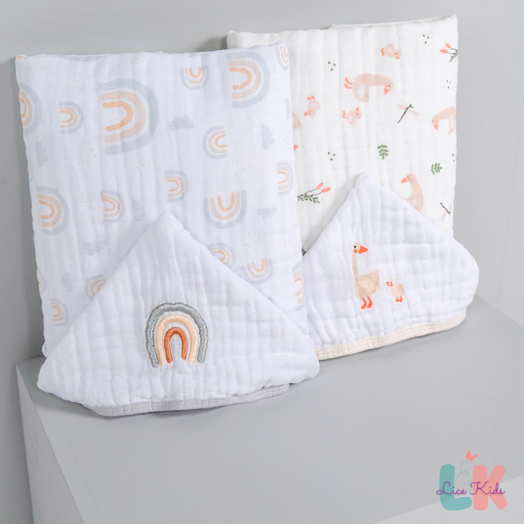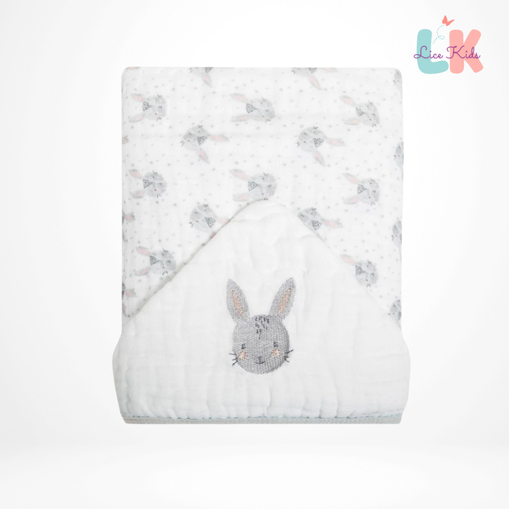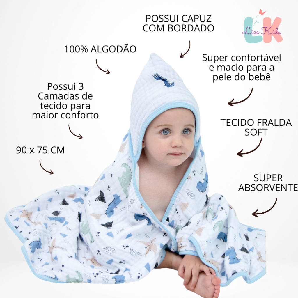 Toalha de Banho para Bebe com Capuz Bordado Tecido Fralda Soft 3 Camadas 90x75cm