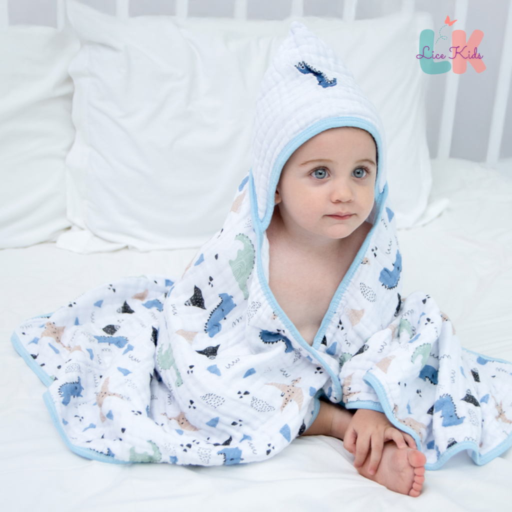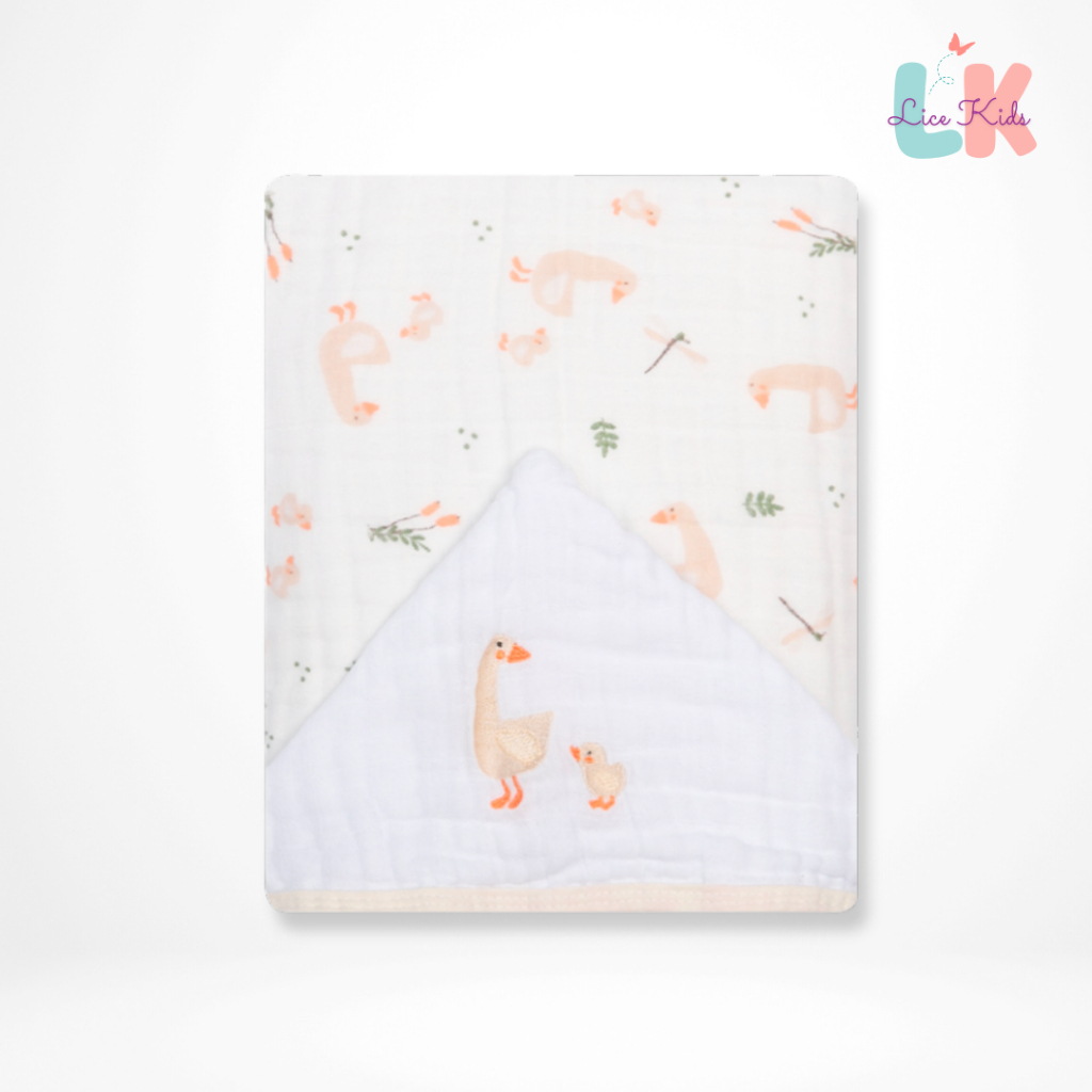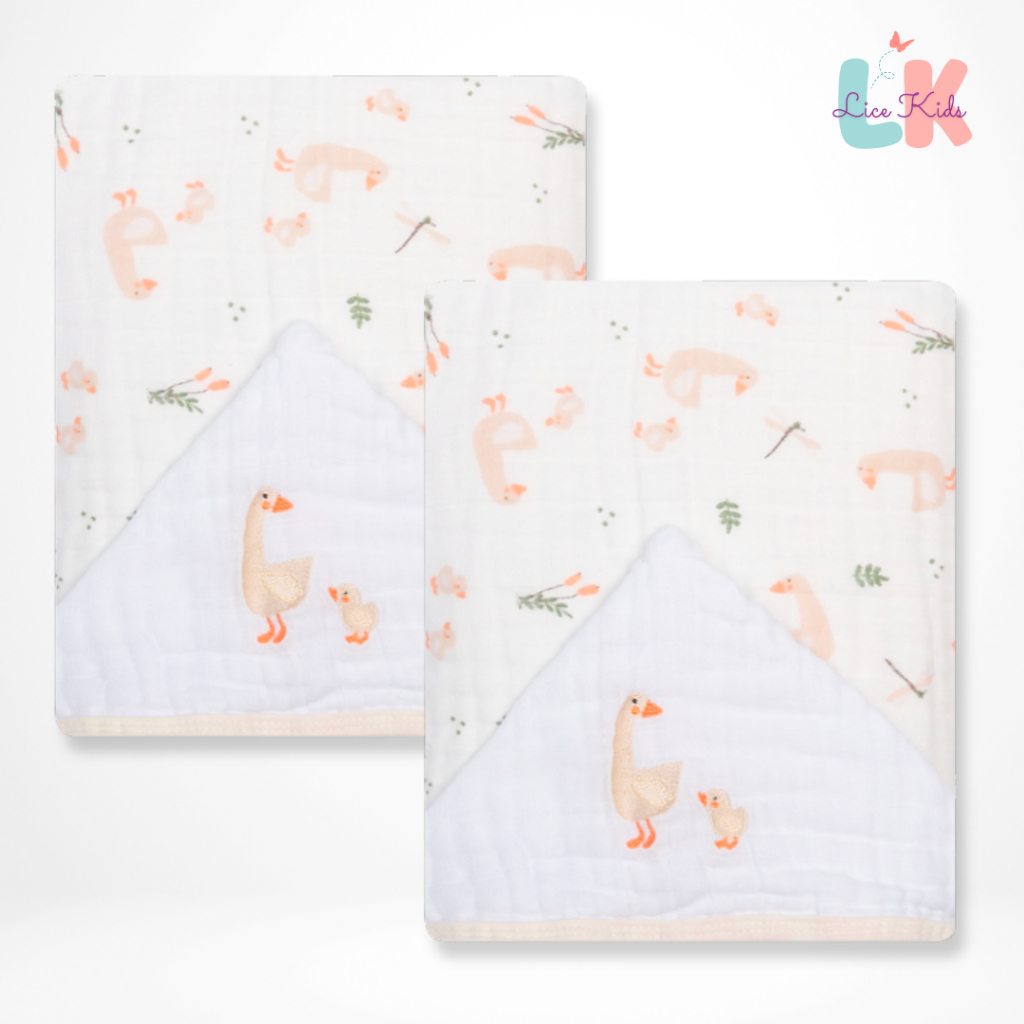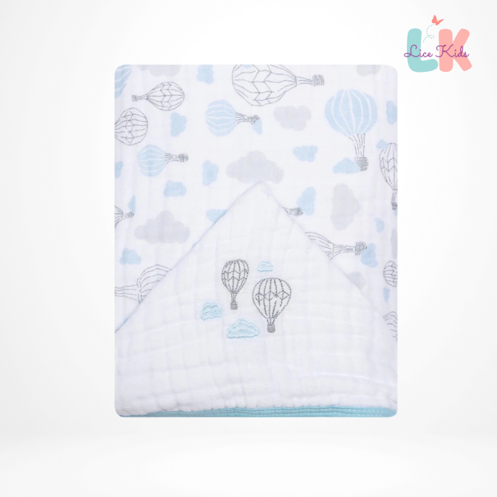 Toalha de Banho para Bebe com Capuz Bordado Tecido Fralda Soft 3 Camadas 90x75cm