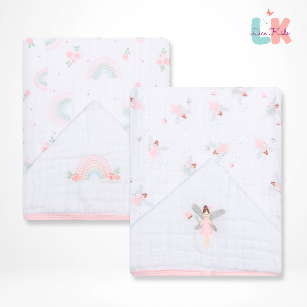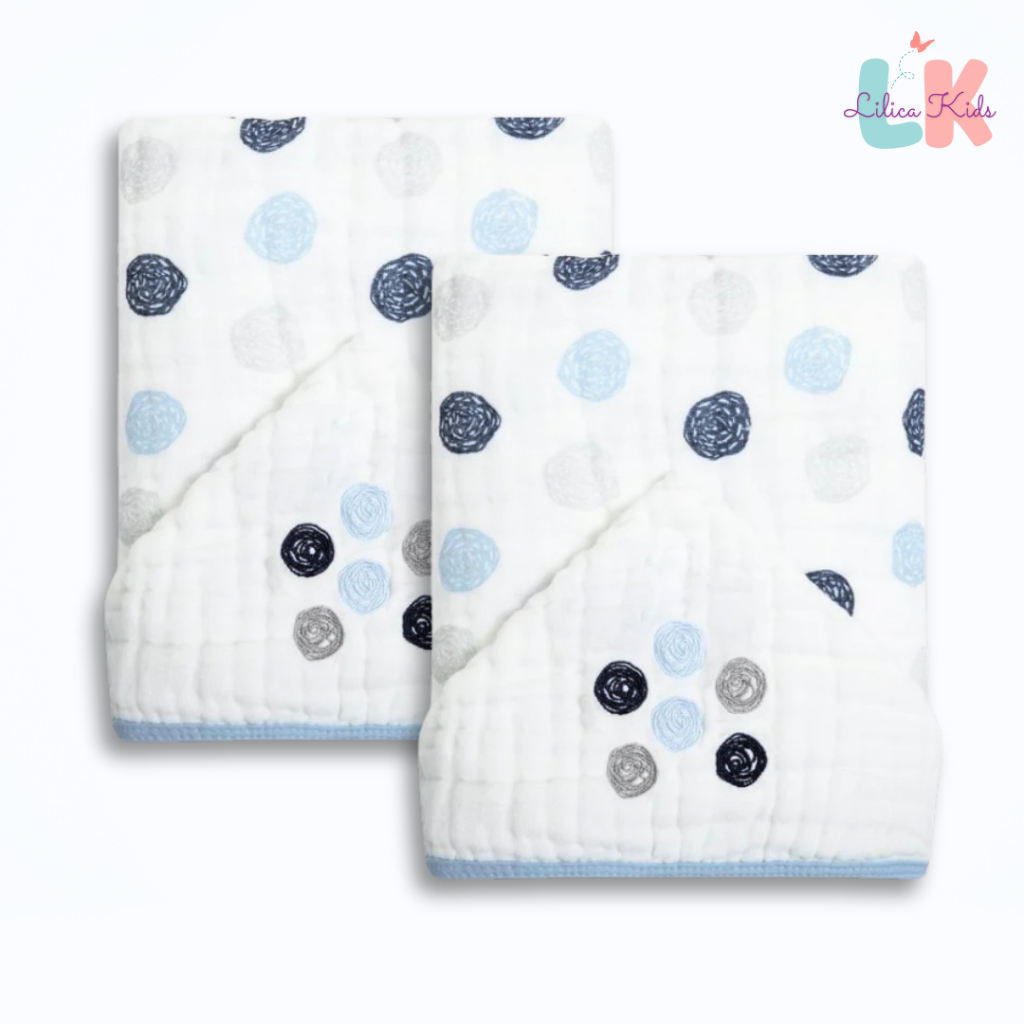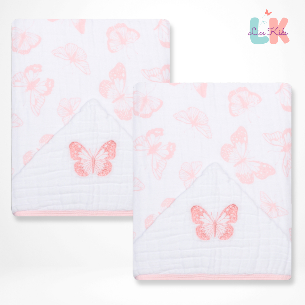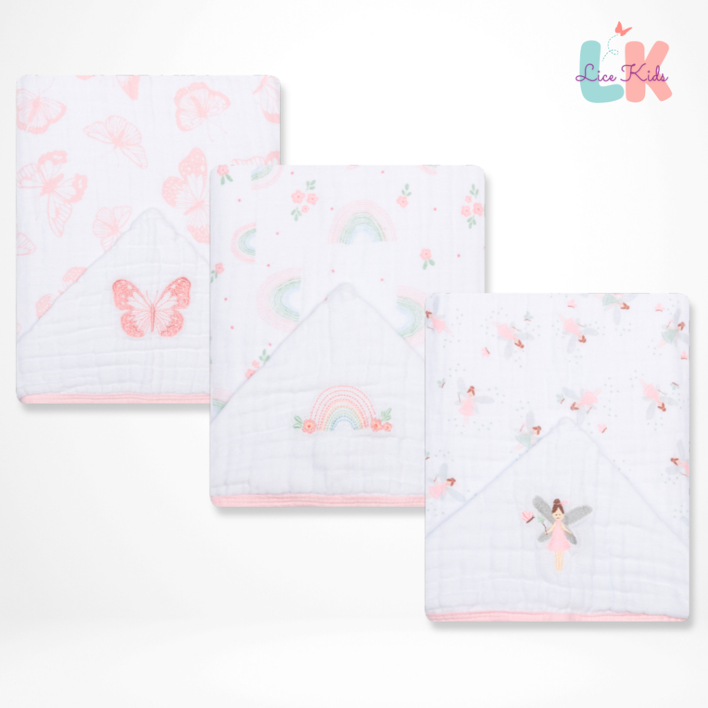 Toalha de Banho para Bebe com Capuz Bordado Tecido Fralda Soft 3 Camadas 90x75cm